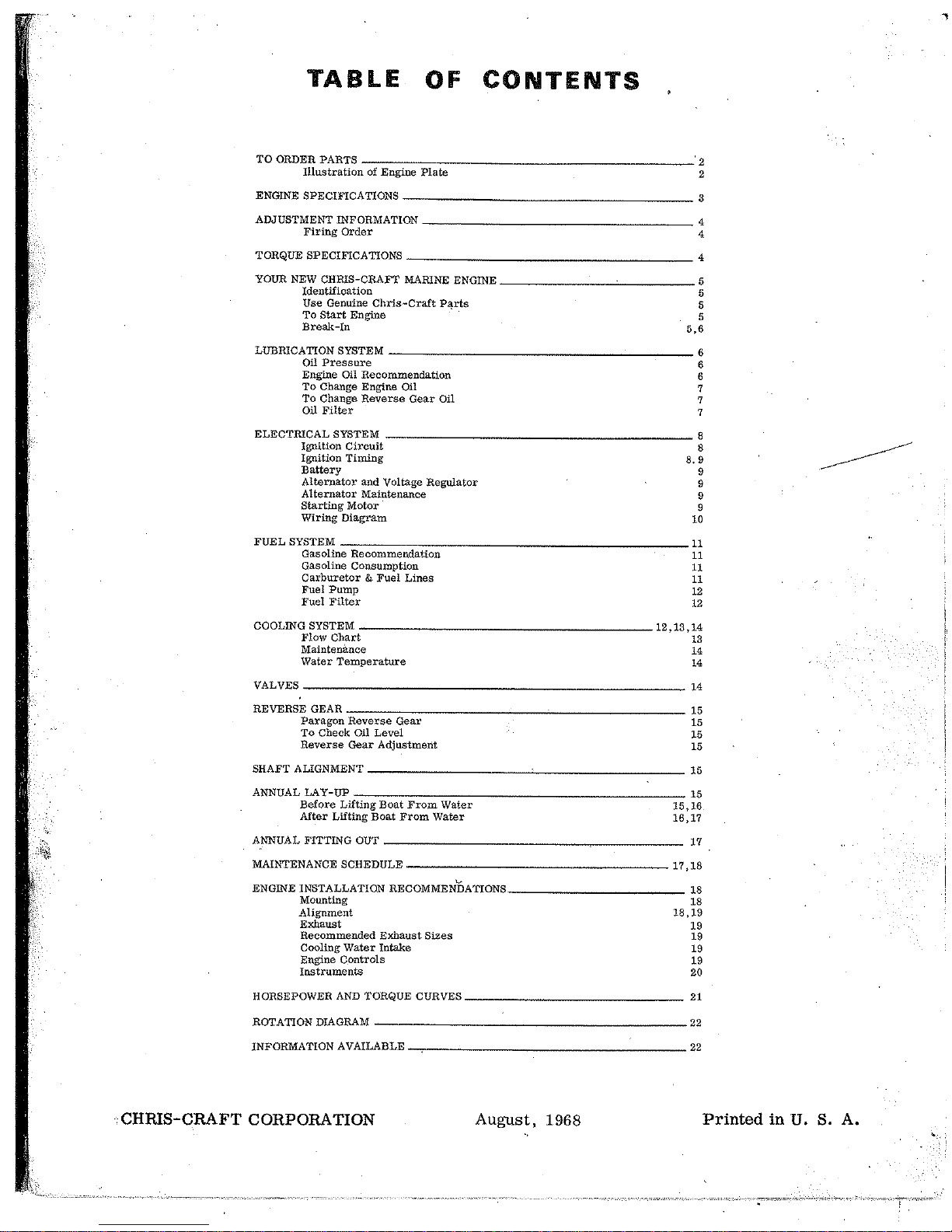 Altri manuali Chris-Craft Motore