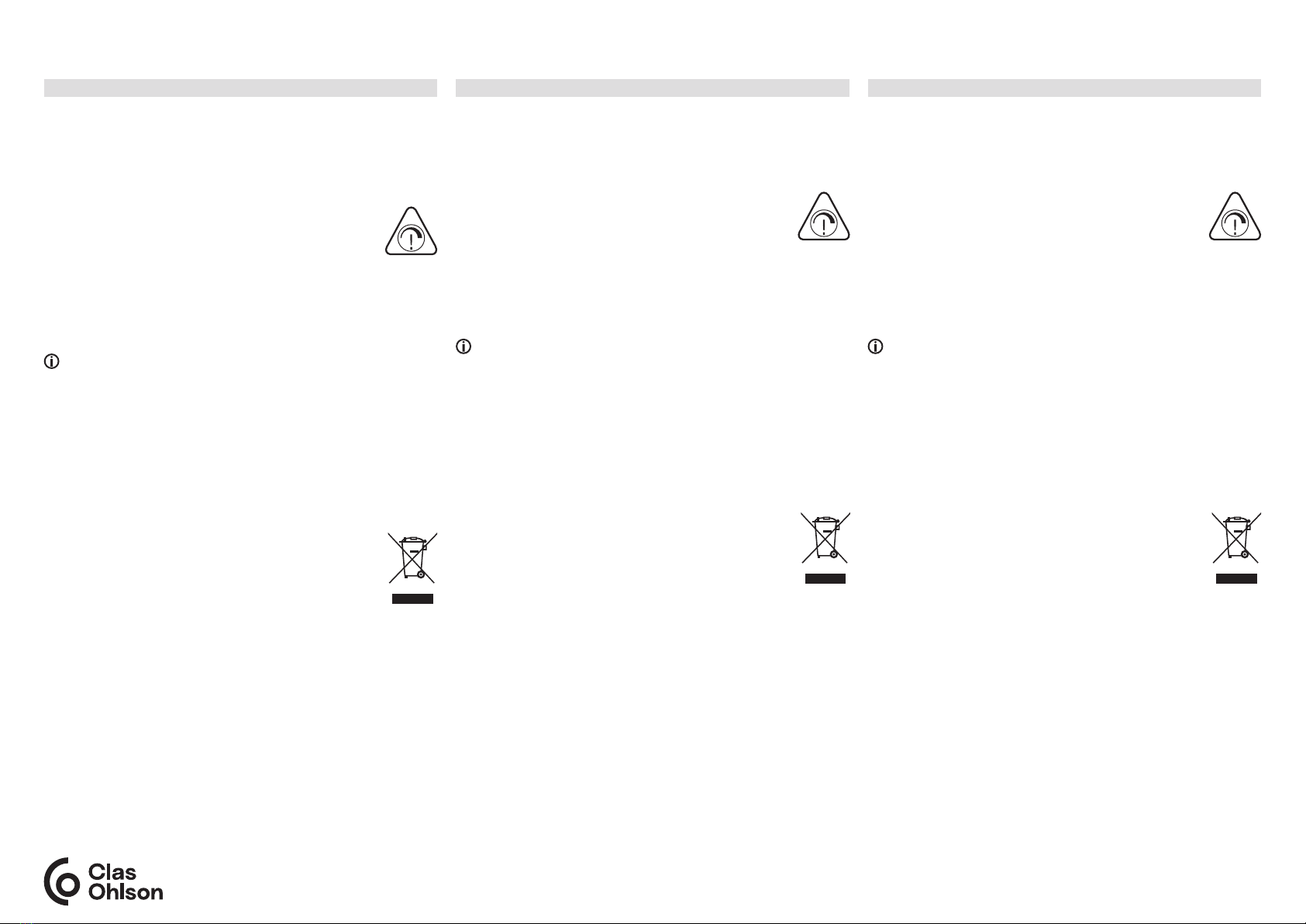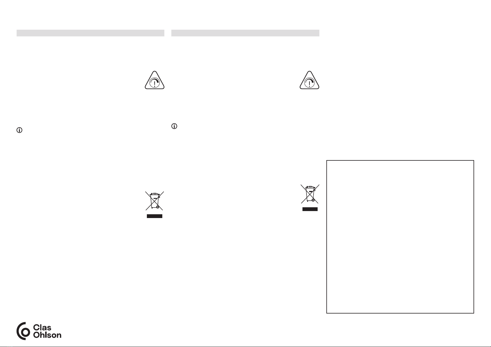 | Tel: 0247/445 00 E-post: kundservice@clasohlson.se Internet: www.clasohlson.se Post: Clas Ohlson AB, 793 85 Insjön