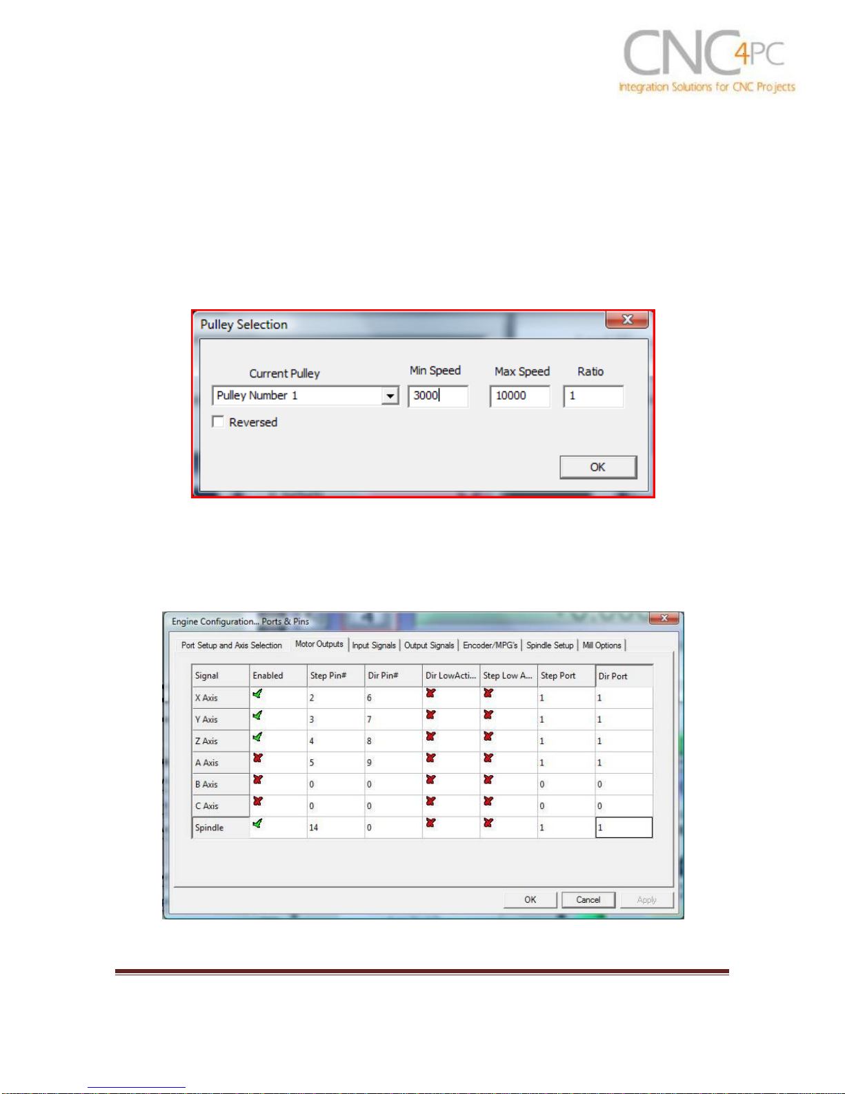 Outputs. Enable the spindle and assign pin 14 for step.