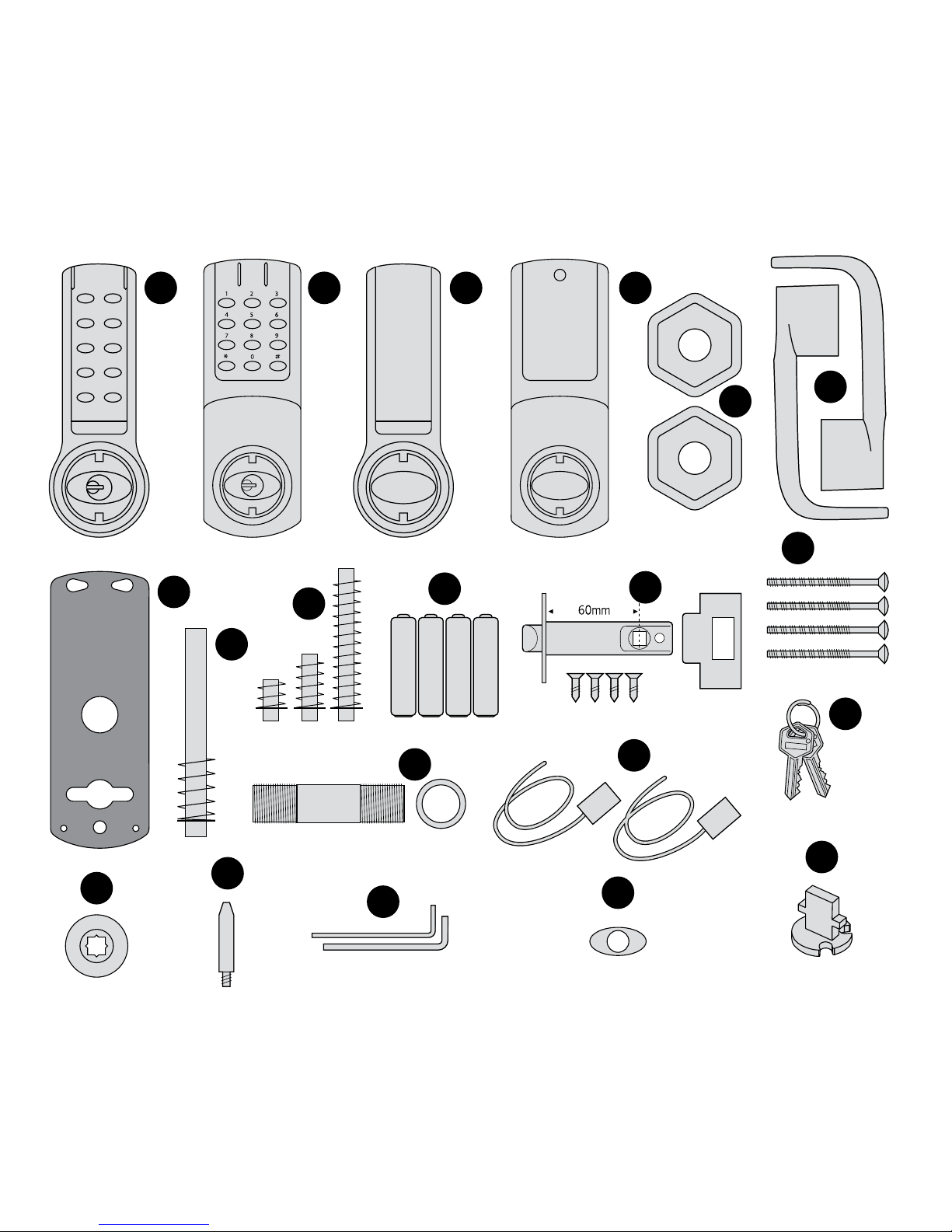 doors between 45-65mm. Insert the longest spindle