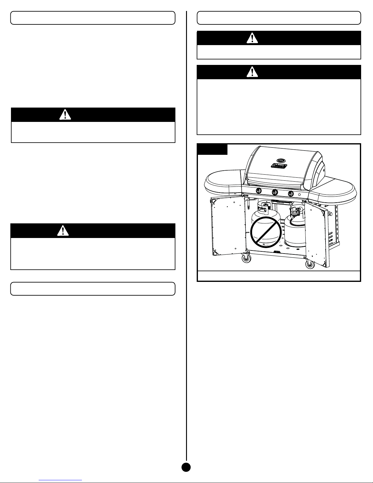 • DO NOT use gas grill indoors or store any propane cylinder(s)