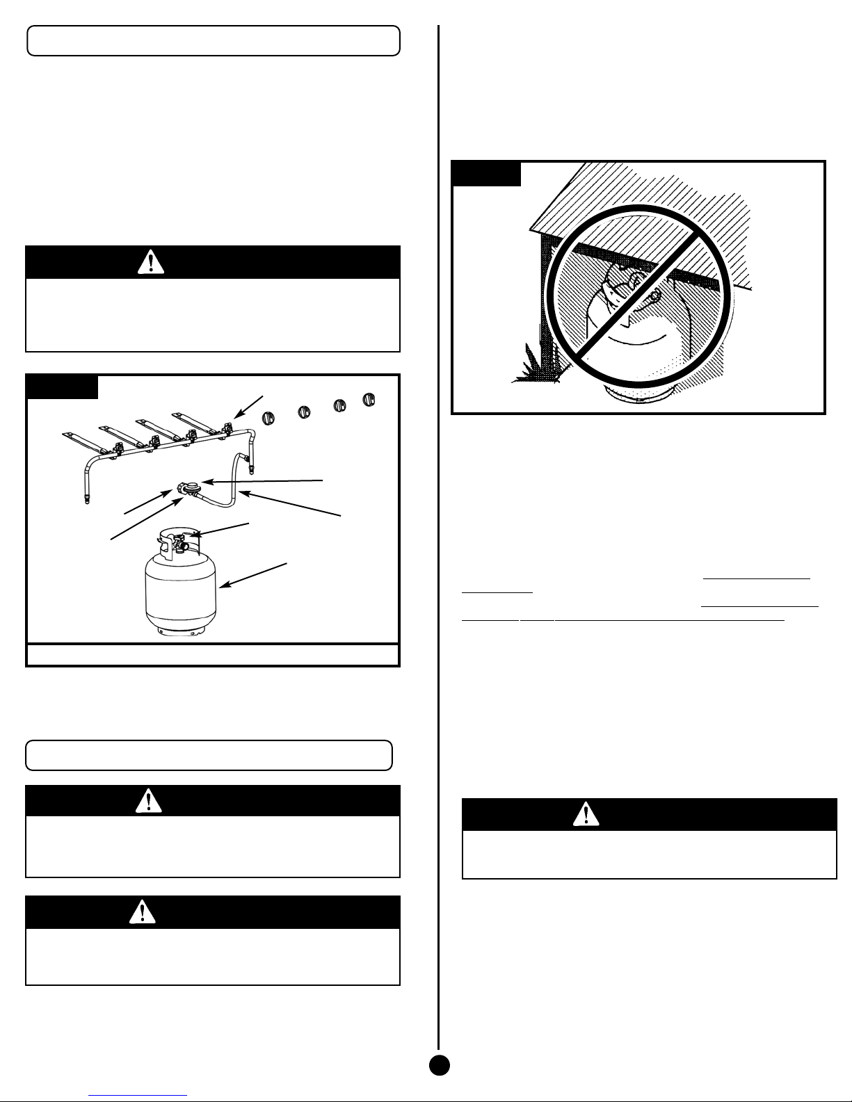 replacing the L.P. gas cylinder, insure that the gas supply hose is free