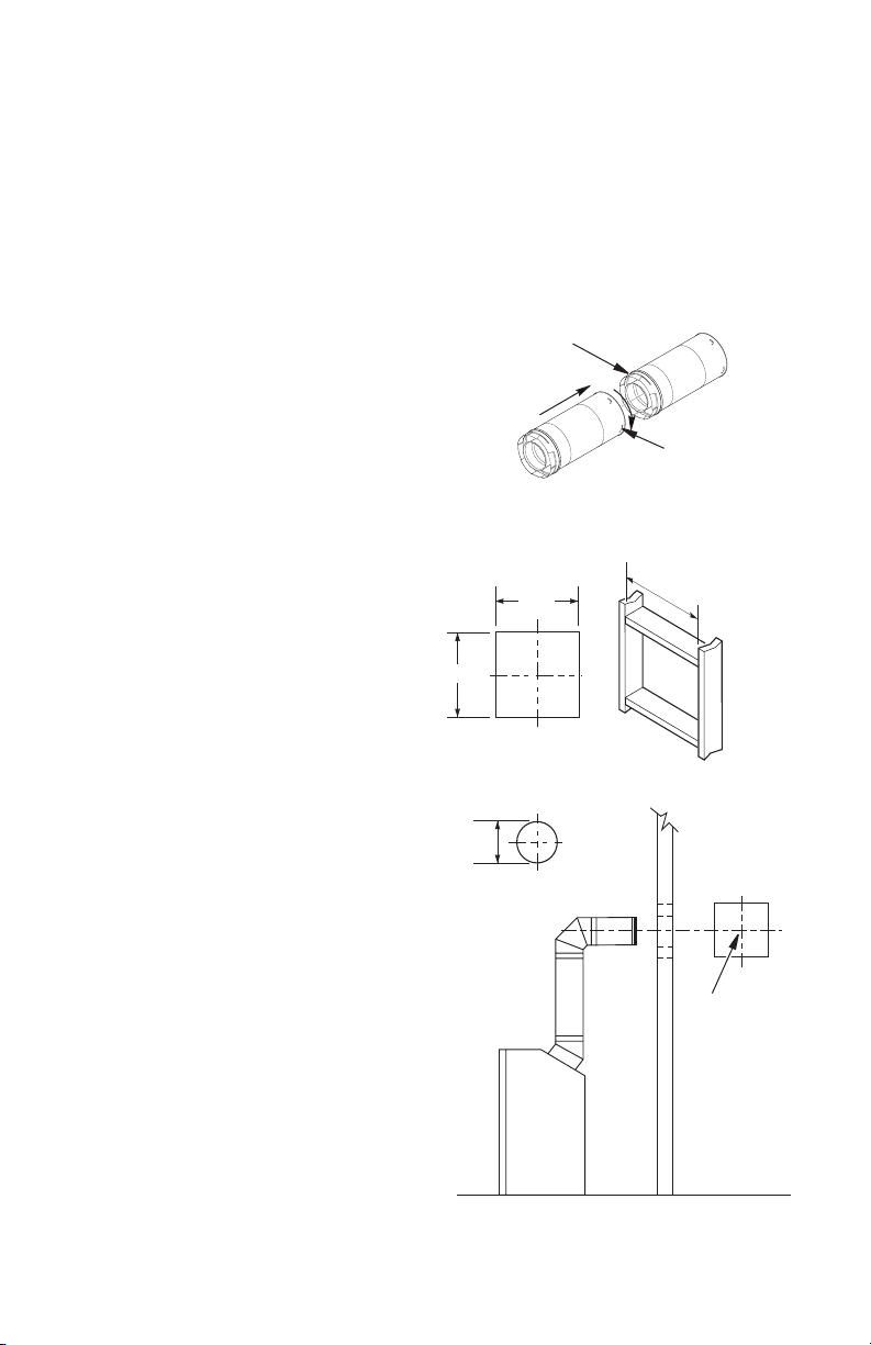 • Vent pipe air space clearances to com-