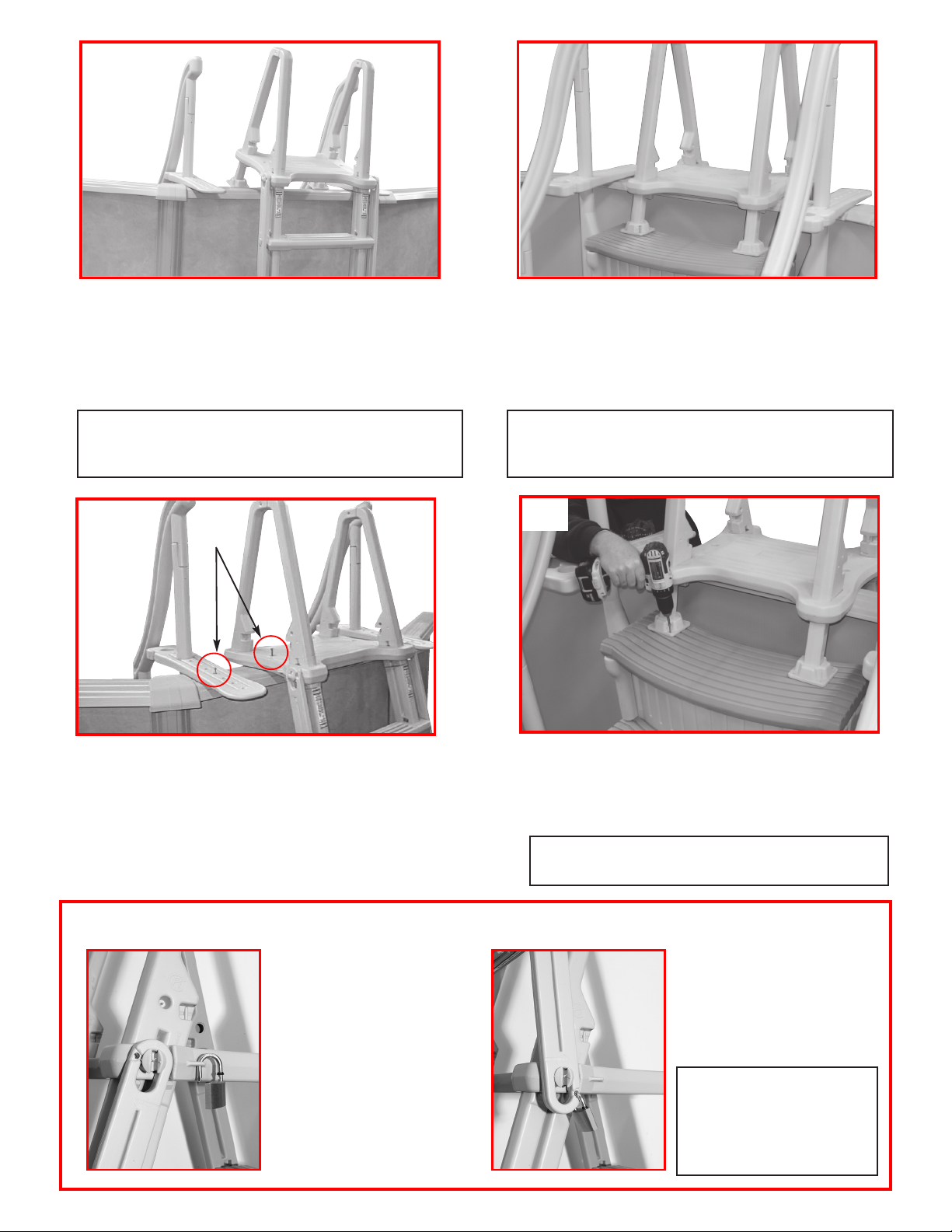 blocks to the pool step using eight [8] #10 x 1-1/4”