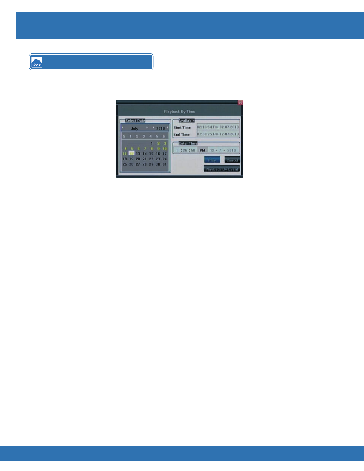 •Press ◄►▲▼ keys to navigate to Playback By Event and press Enter key