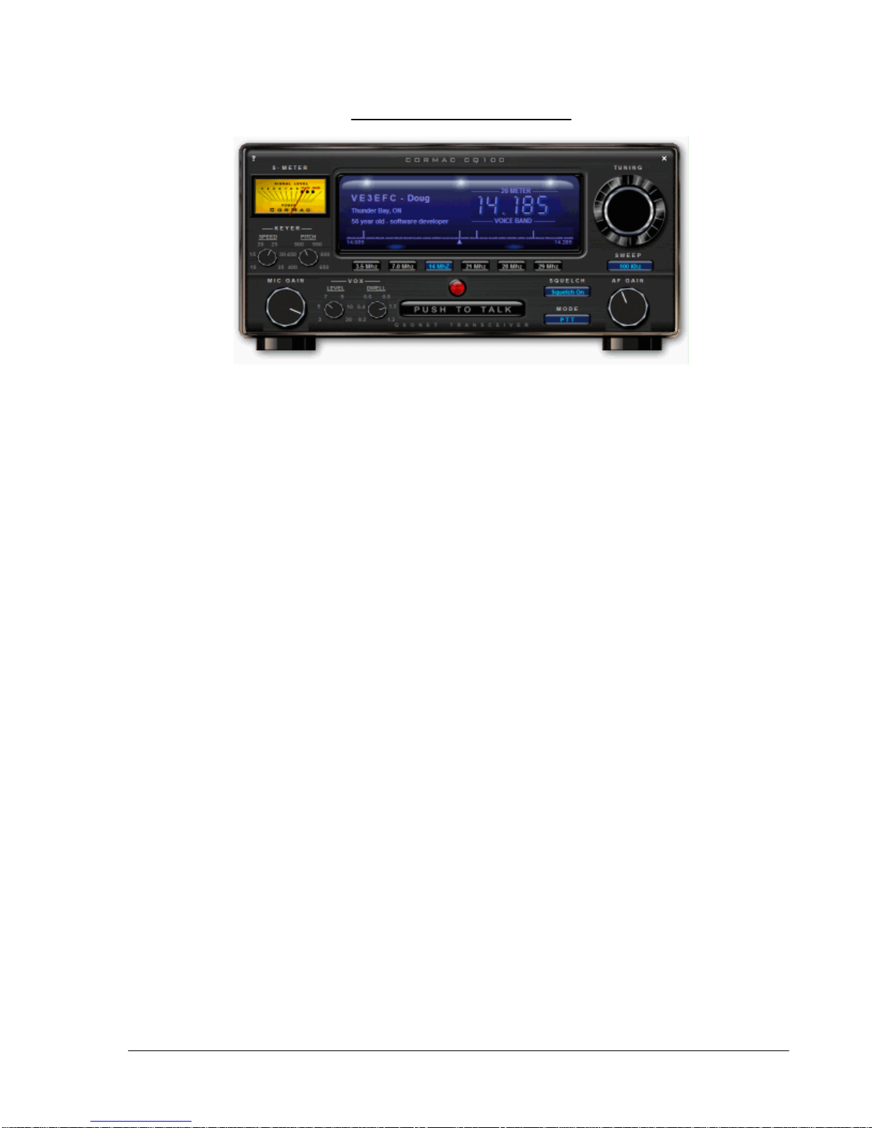 When your transceiver opens you can begin exploring the operation of the controls. Everything works
