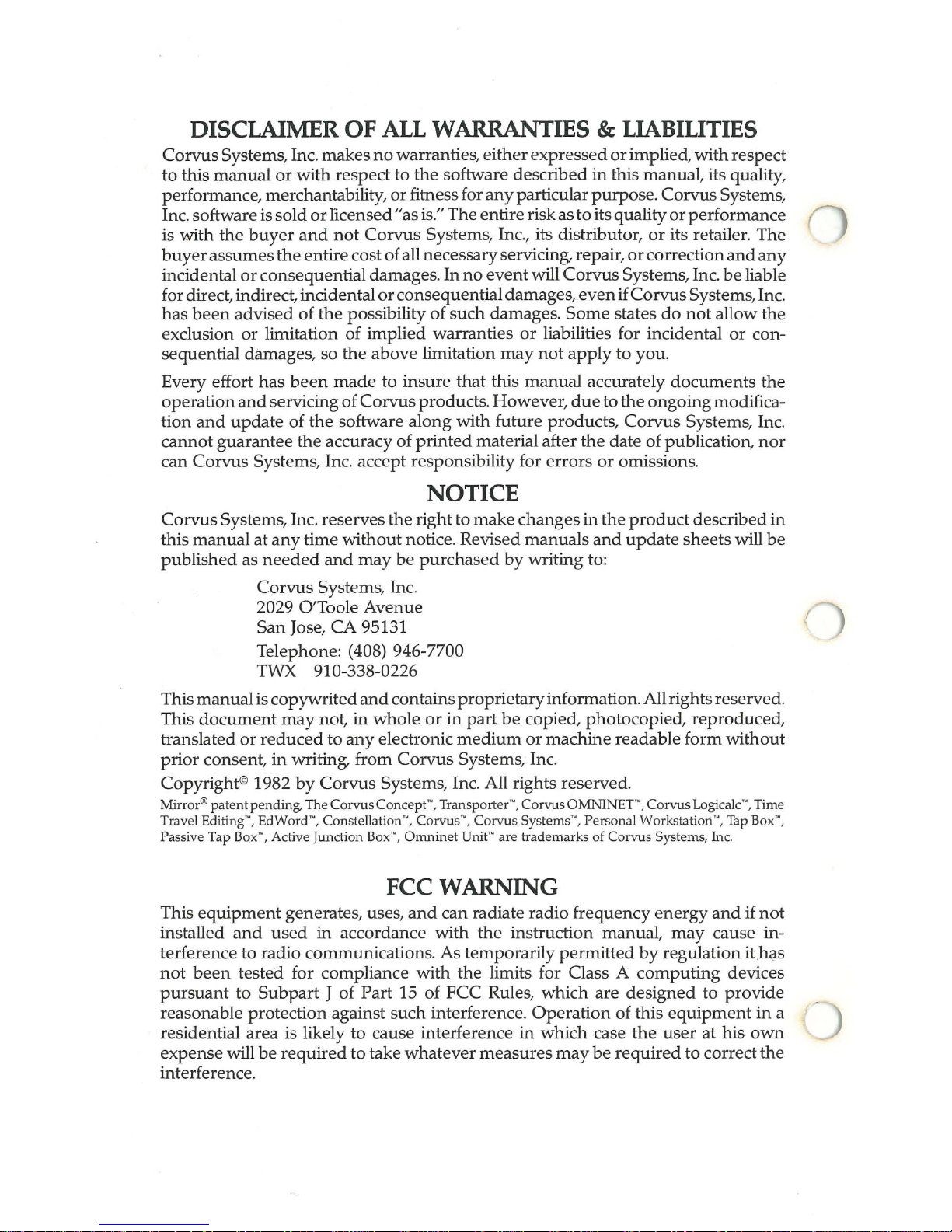 e trademarks of Corvus Systems, Inc.