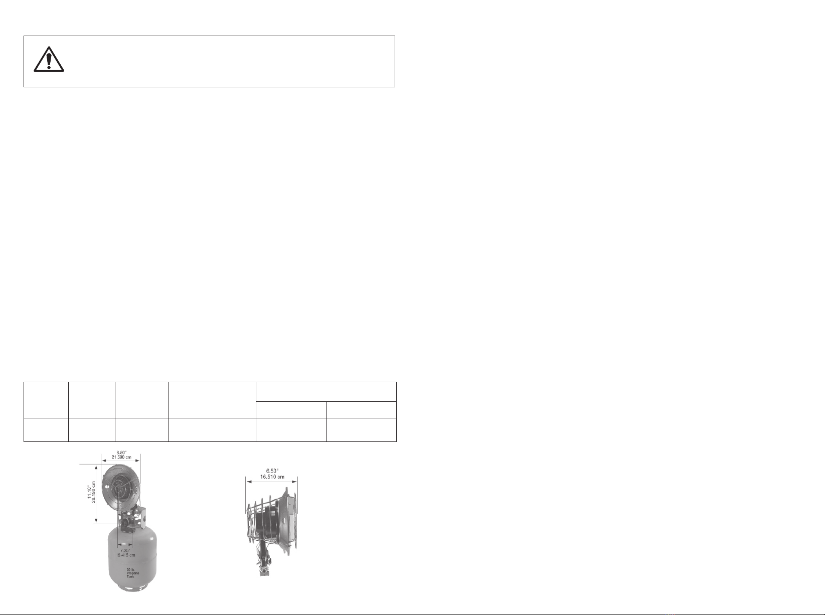 ● This heater should not be directed toward any propane (LP) or gas container