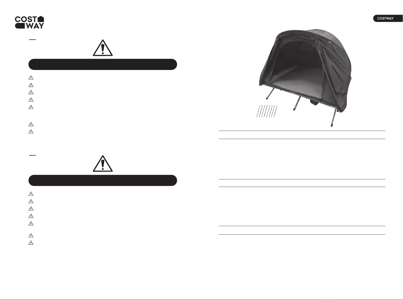 1. Das Campingbett sollte nur von Erwachsenen auf- und abgebaut werden.