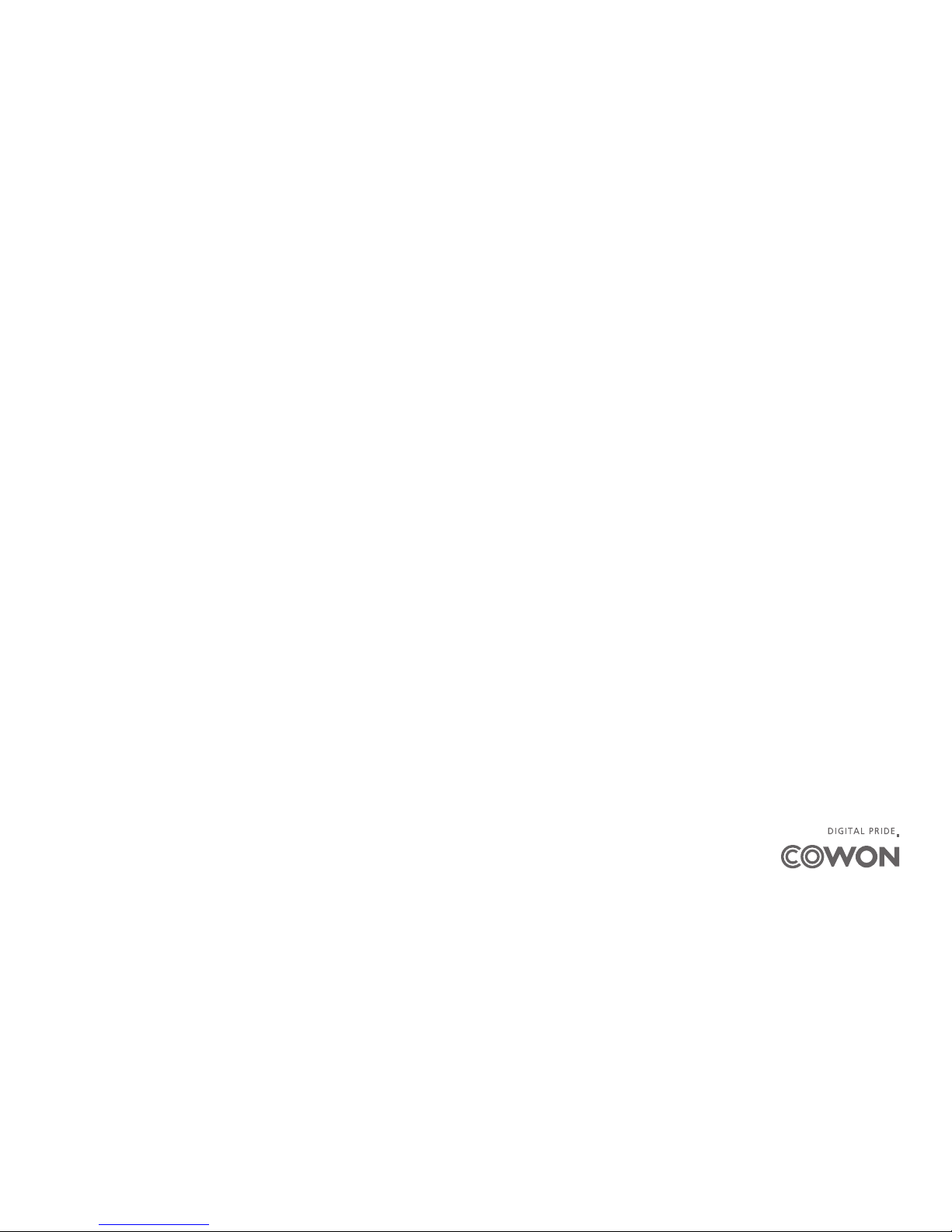 + Information in this document is copyrighted by COWON SYSTEMS, Inc. and unauthorized distribution of any part of this manual is prohibited by law.
