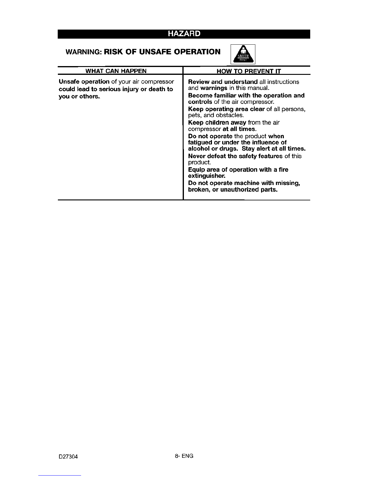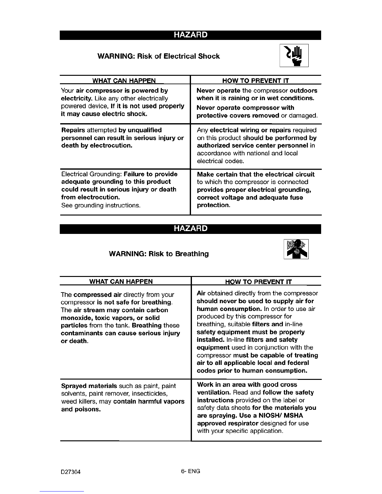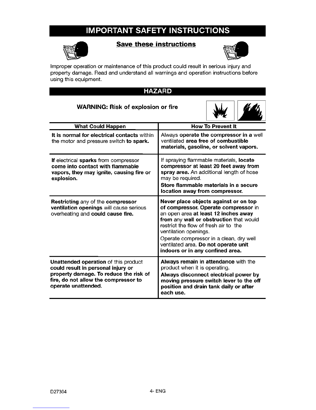 attachments. Never use compressor to