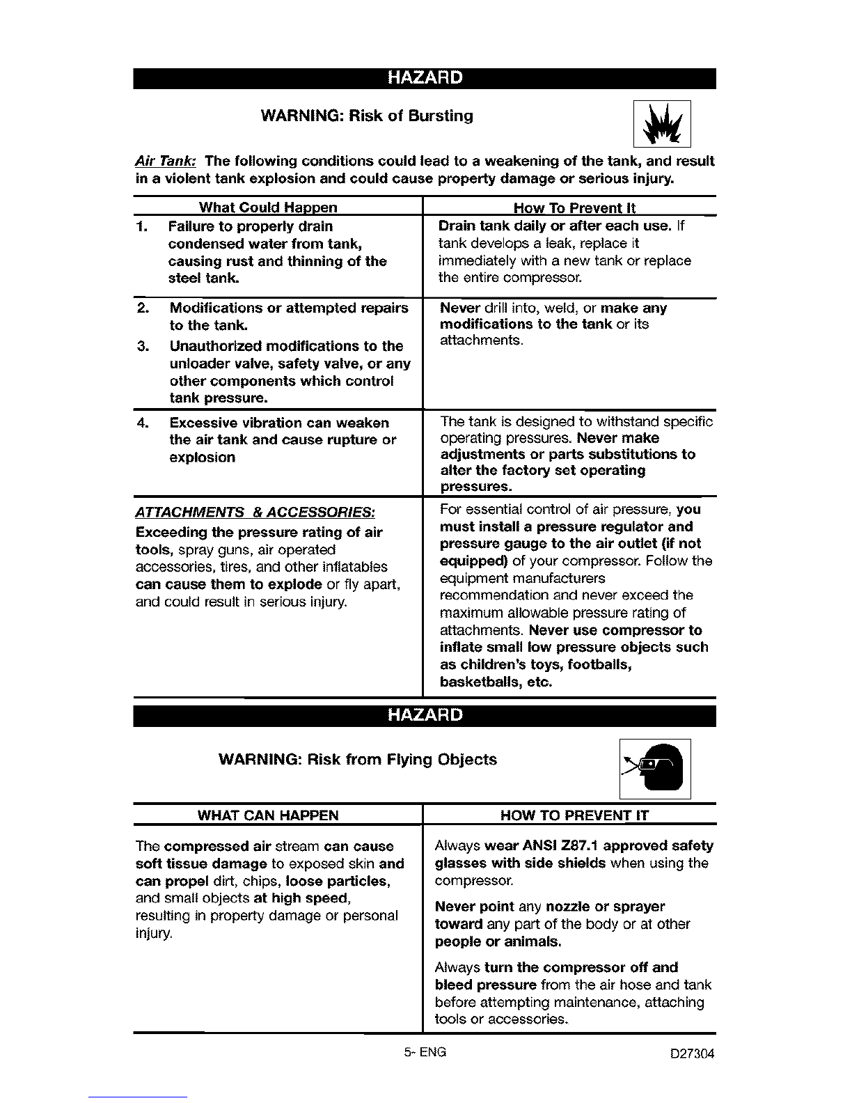 the air tank and cause rupture or