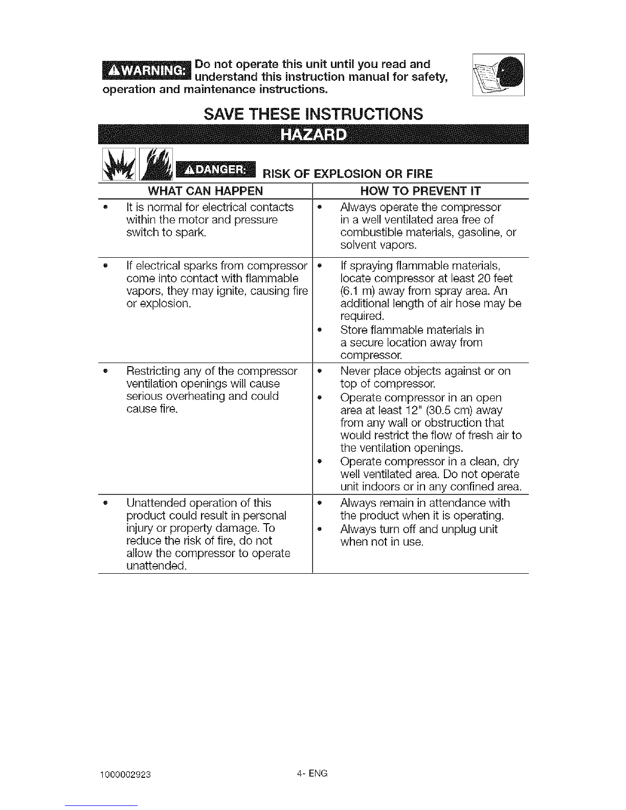 Never operate compressor with