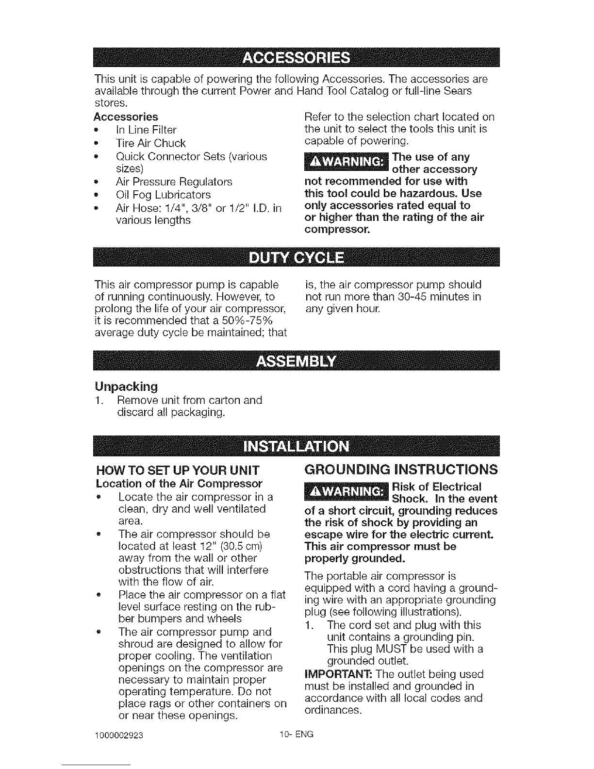 attachments. Never use compressor