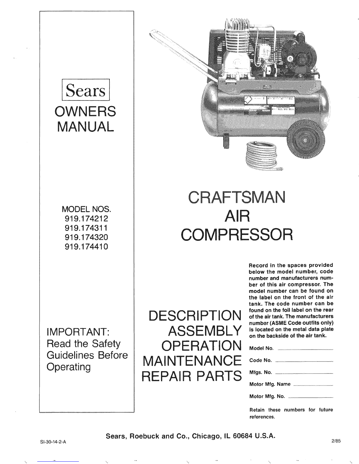 Sears 9-16426 or SAE 20-20W SF motor oil until it is