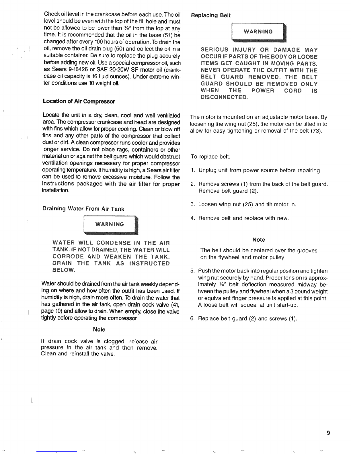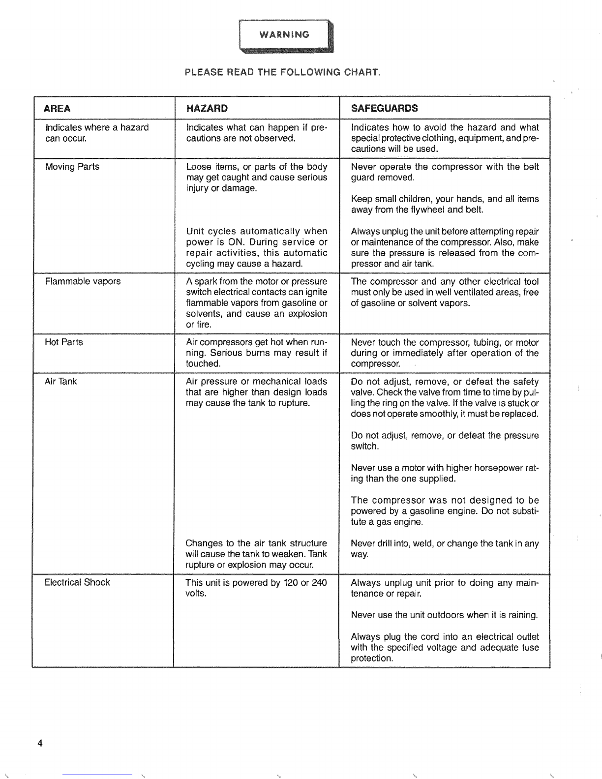 buildup in the air tank. RUN THE COMPRESSOR 30