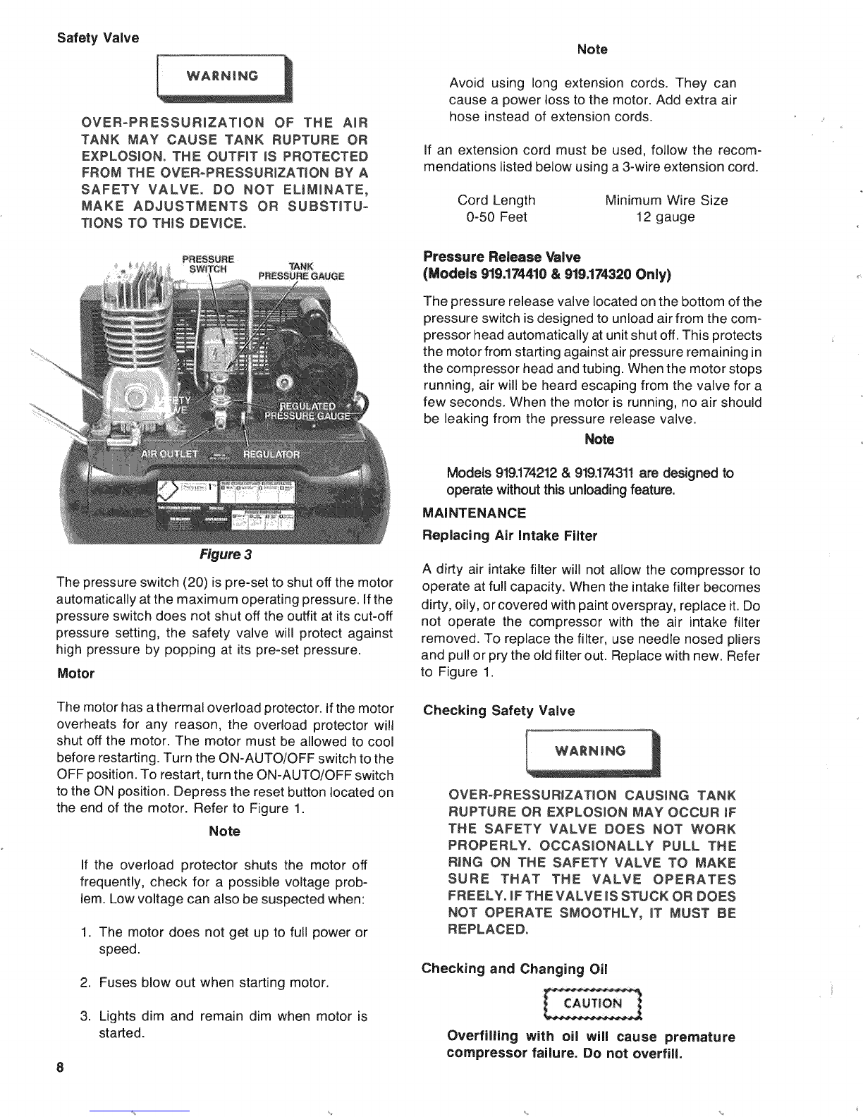 sure and stops the motor when the air tank pressure