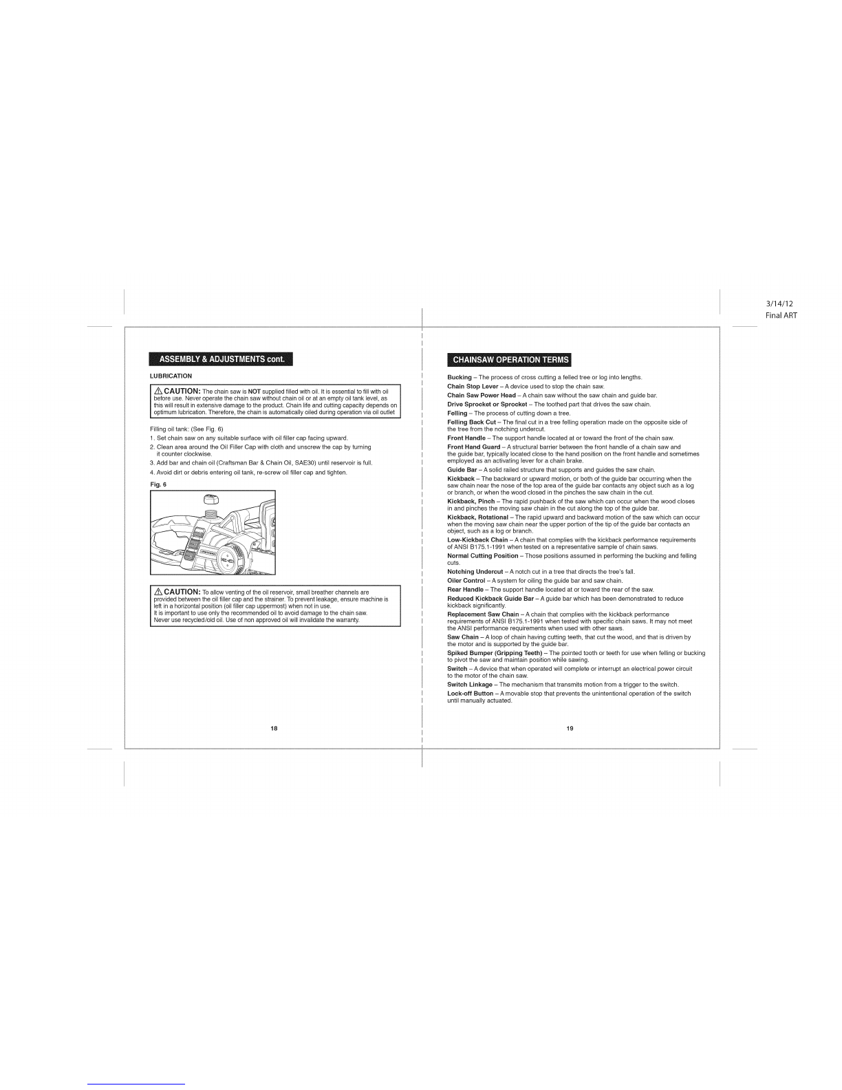 1. If any part of this Chain Saw is missing or should break, bend, or fail in any way;
