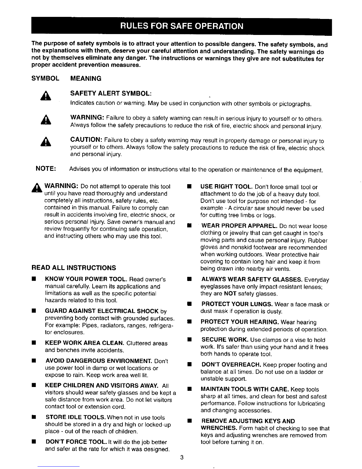 RULES FOR SAFE OPERATION (Continued)
