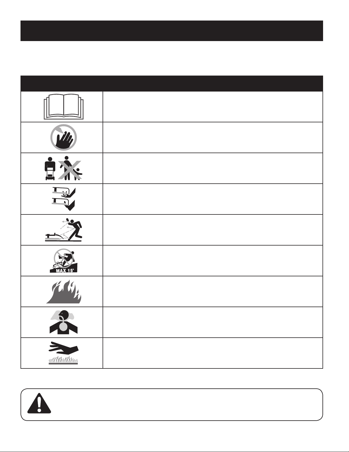 • Many injuries occur as a result of the mower being pulled over the foot
