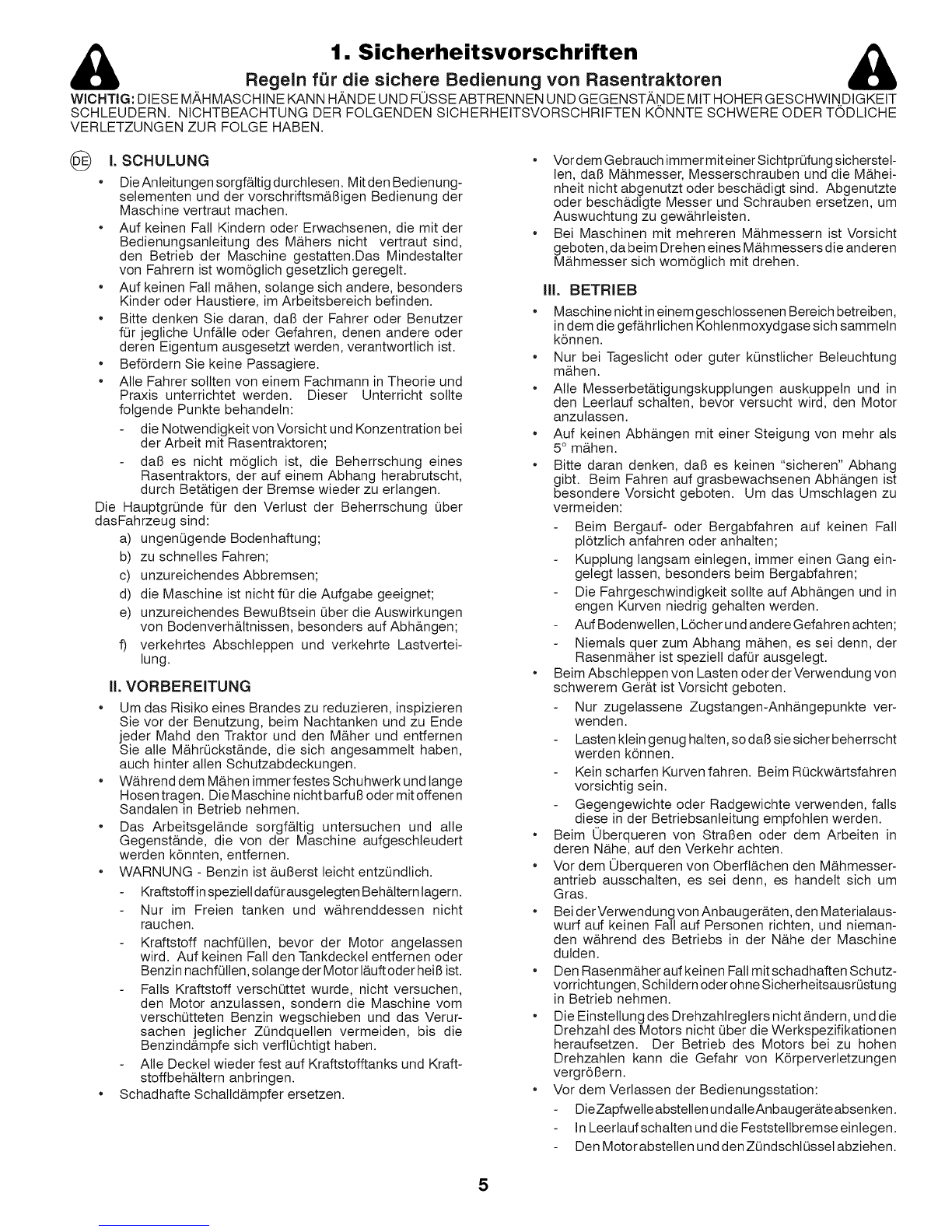 Regeln f_r die sichere Bedienung von Rasentraktoren