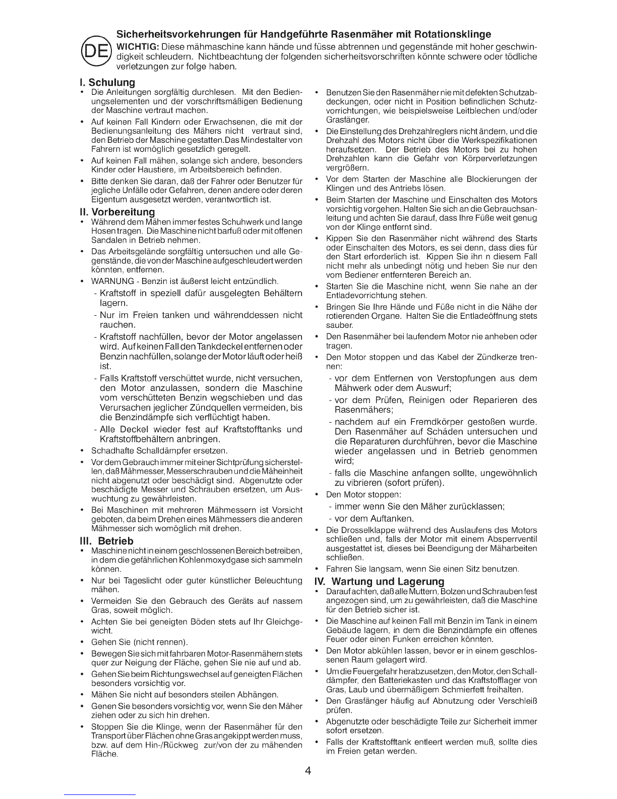 Sicherheitsvorkehrungen f_r Handgef_hrte Rasenm_her mit Rotationsklinge