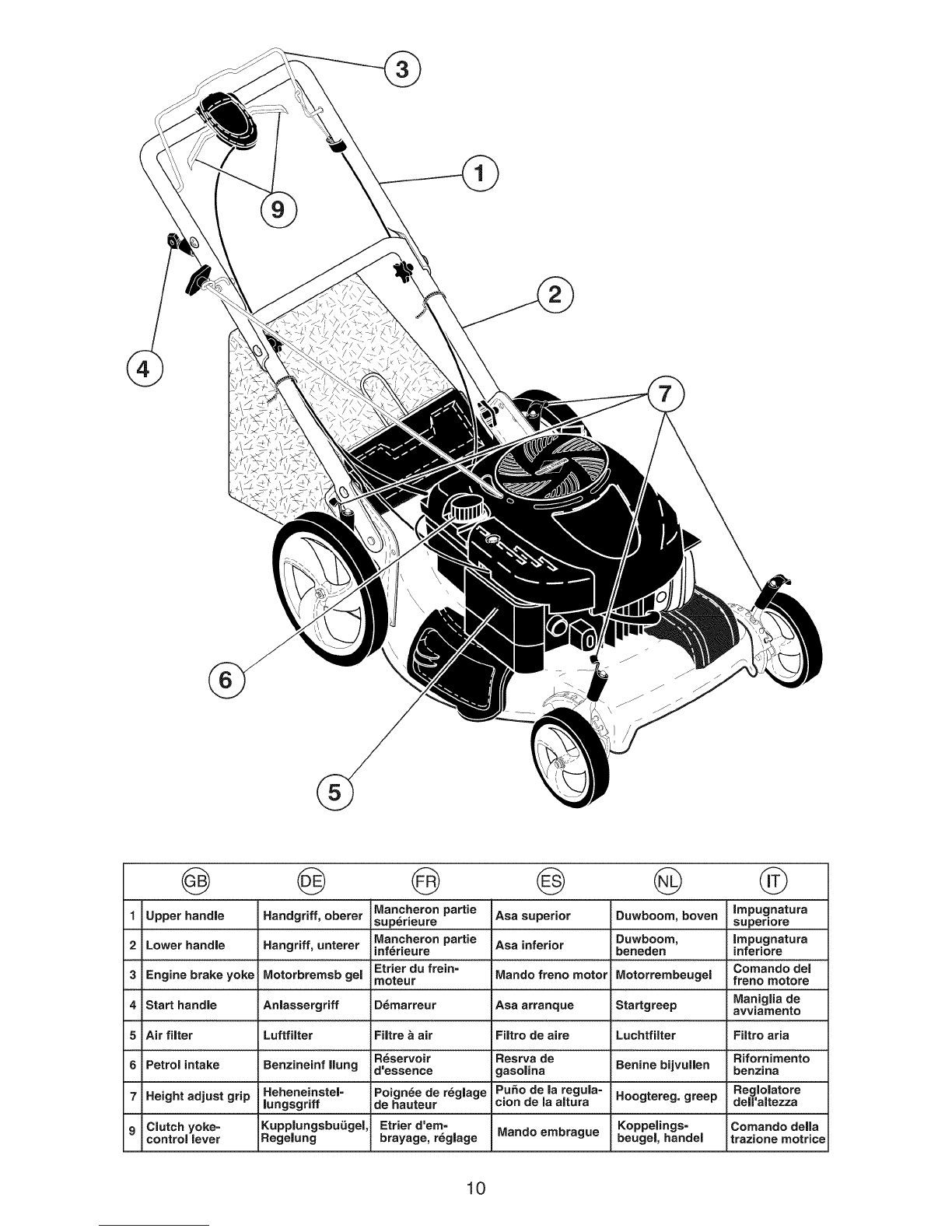 Kippen Sie den Rasenm_her nicht w_.hrend des Starts