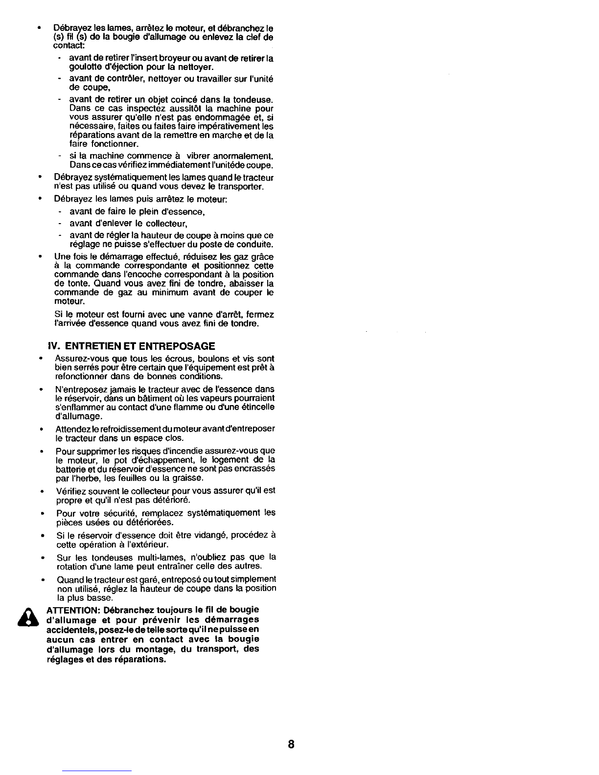 Avant d'utiliser votre autoportee, verifiez toujours que les