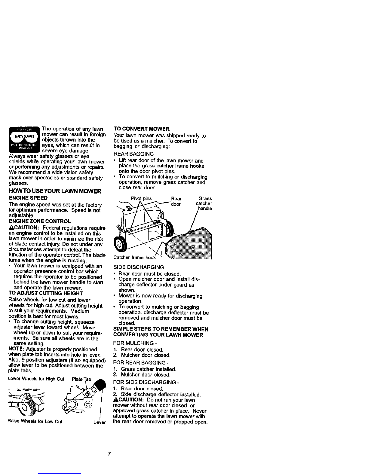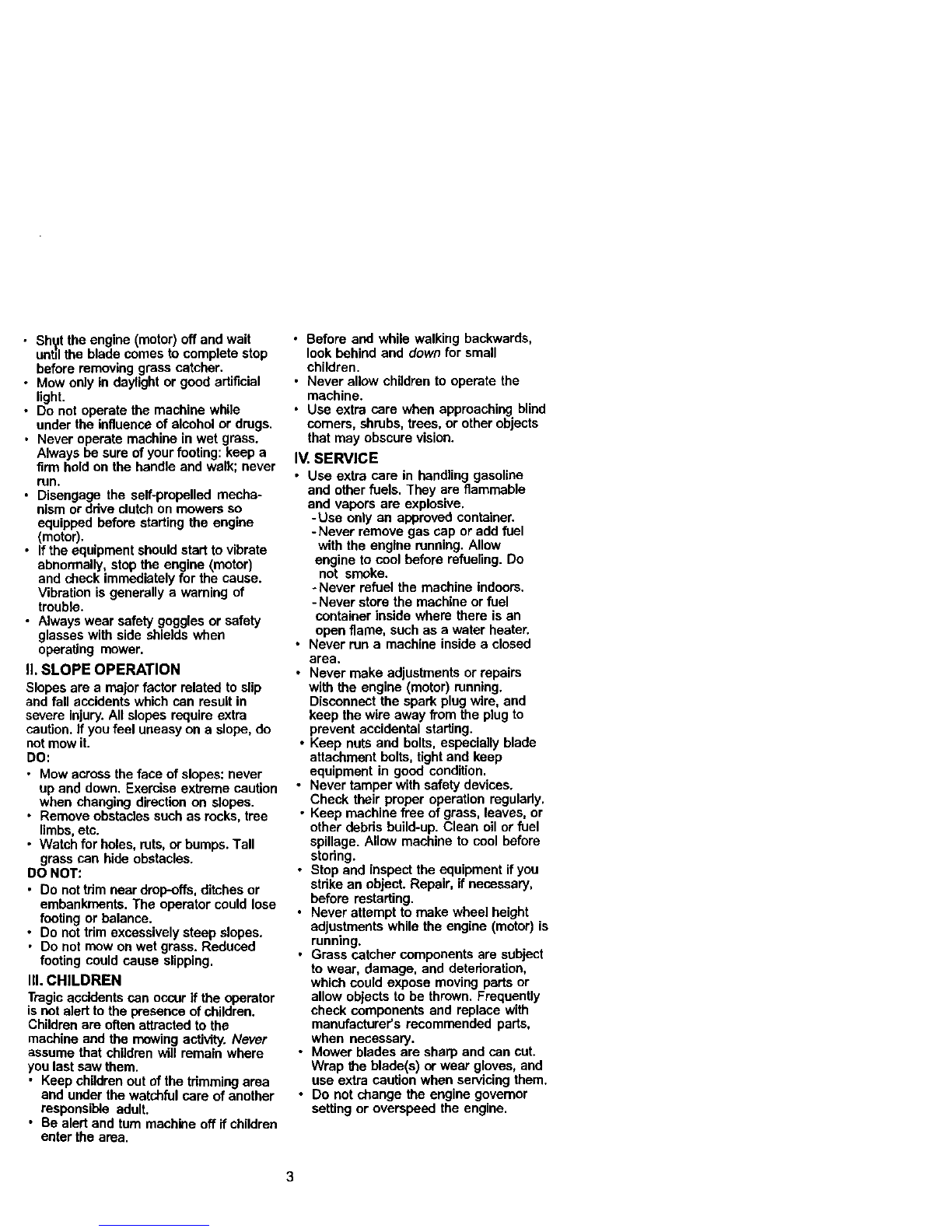 • Mow only in daylight or good artificial