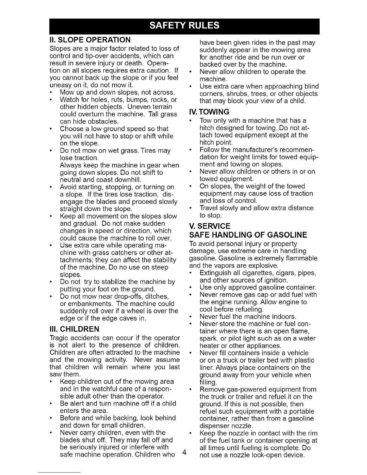 • Do not mow near drop-offs, ditches,