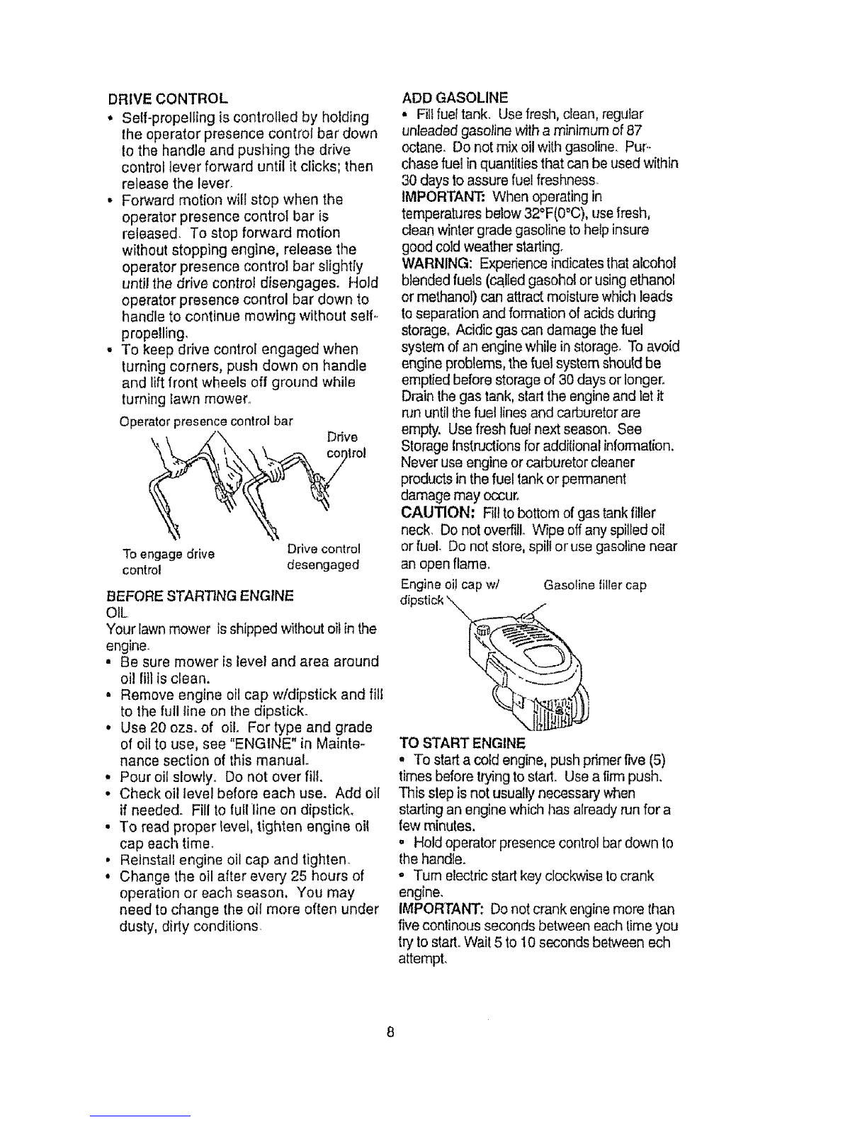 • Never store mower with fuel in the tank