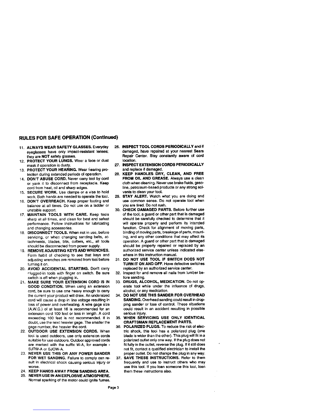 23. NEVER USE THIS OR ANY POWER SANDER