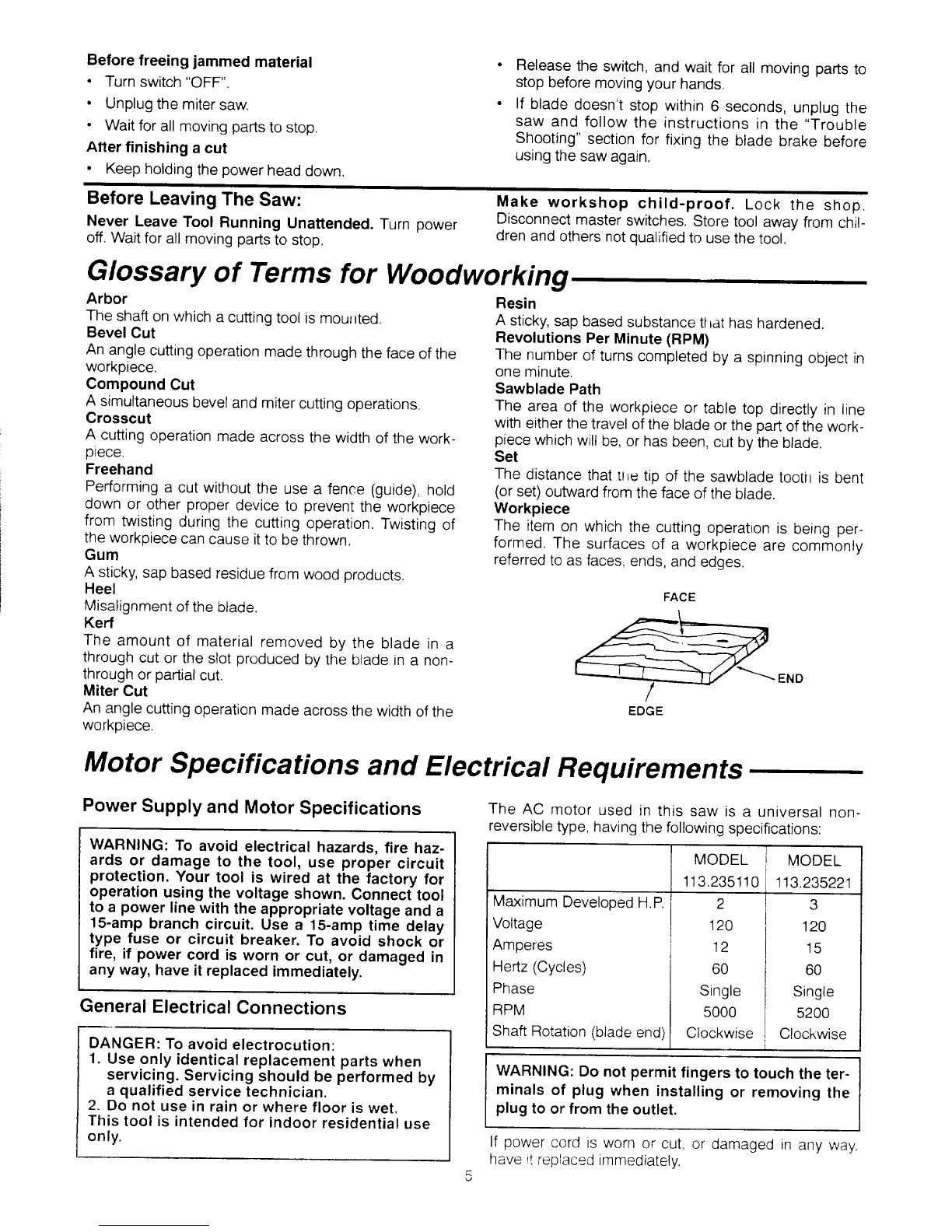 miter saw while any parts are moving.