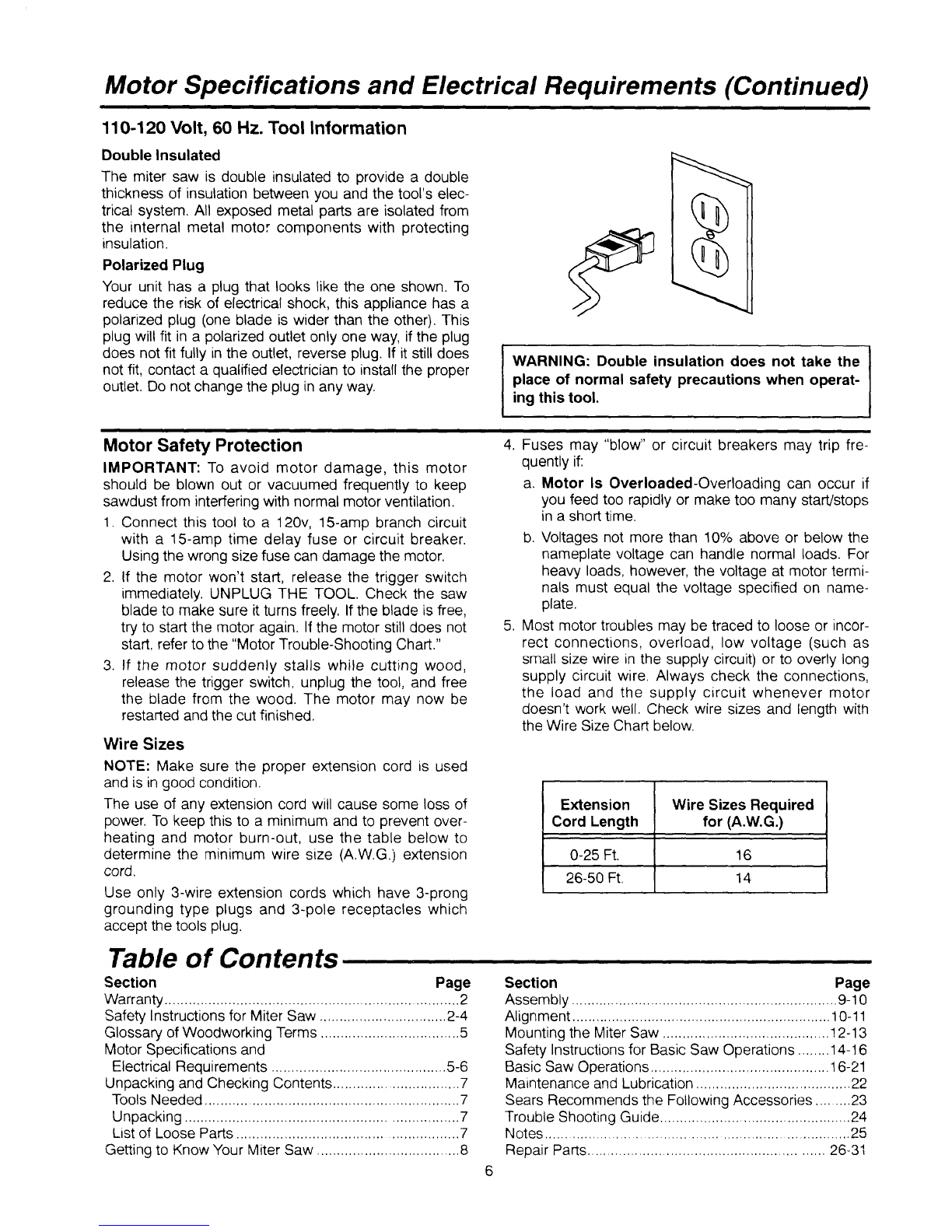 before plugging miter saw into a power outlet.