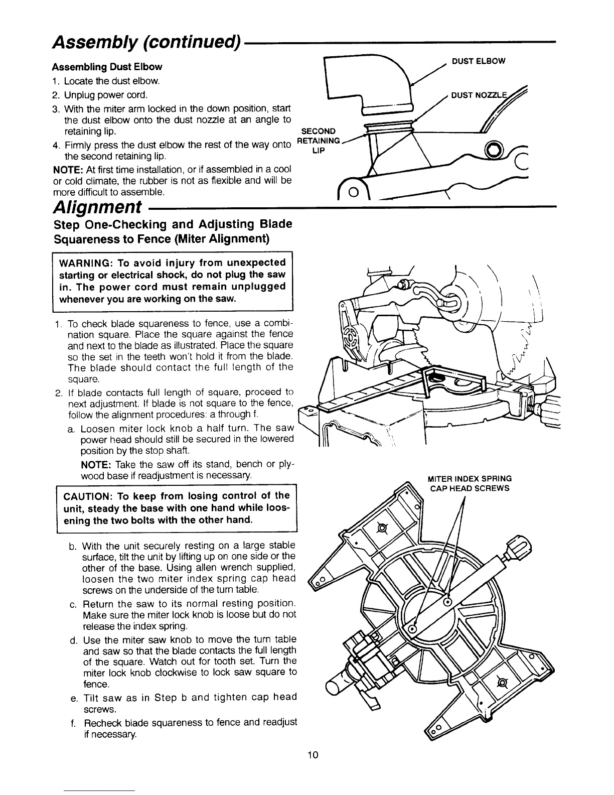erly aligned. With the saw unplugged, push the