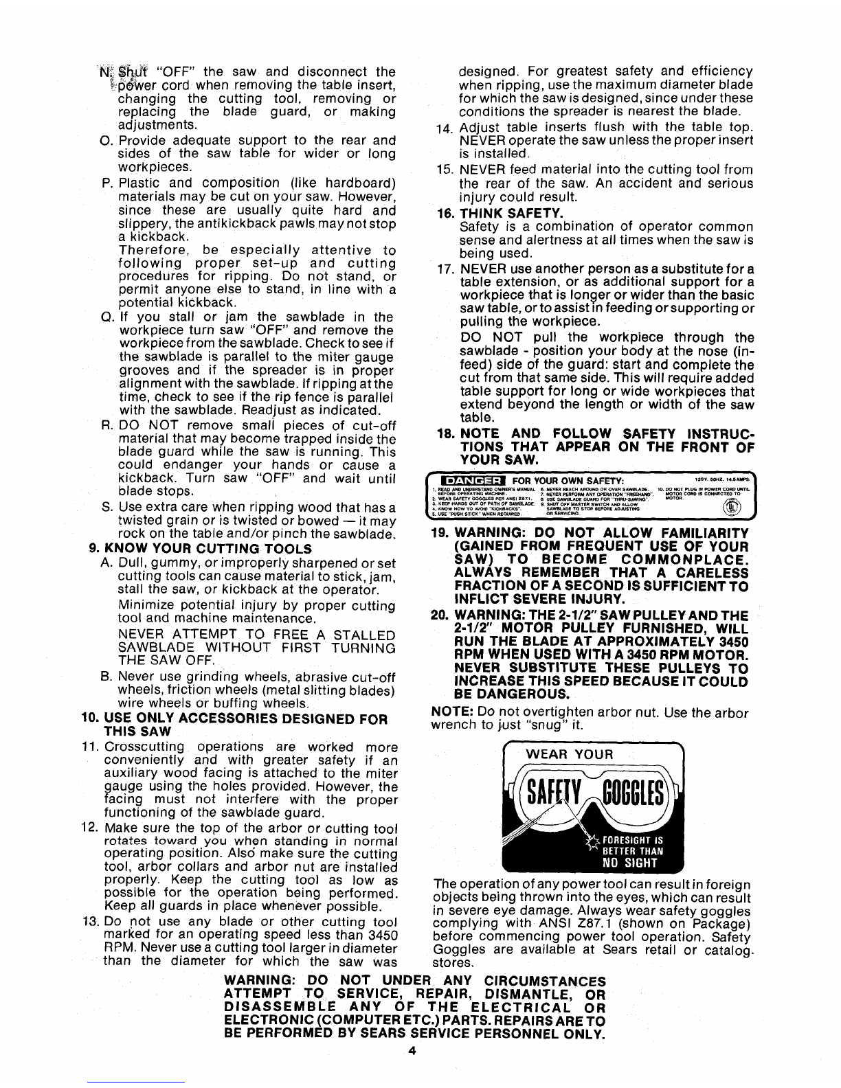 WARNING: FOR YOUR OWN SAFETY, DO NOT B. Wear safety goggles that comply with ANSI