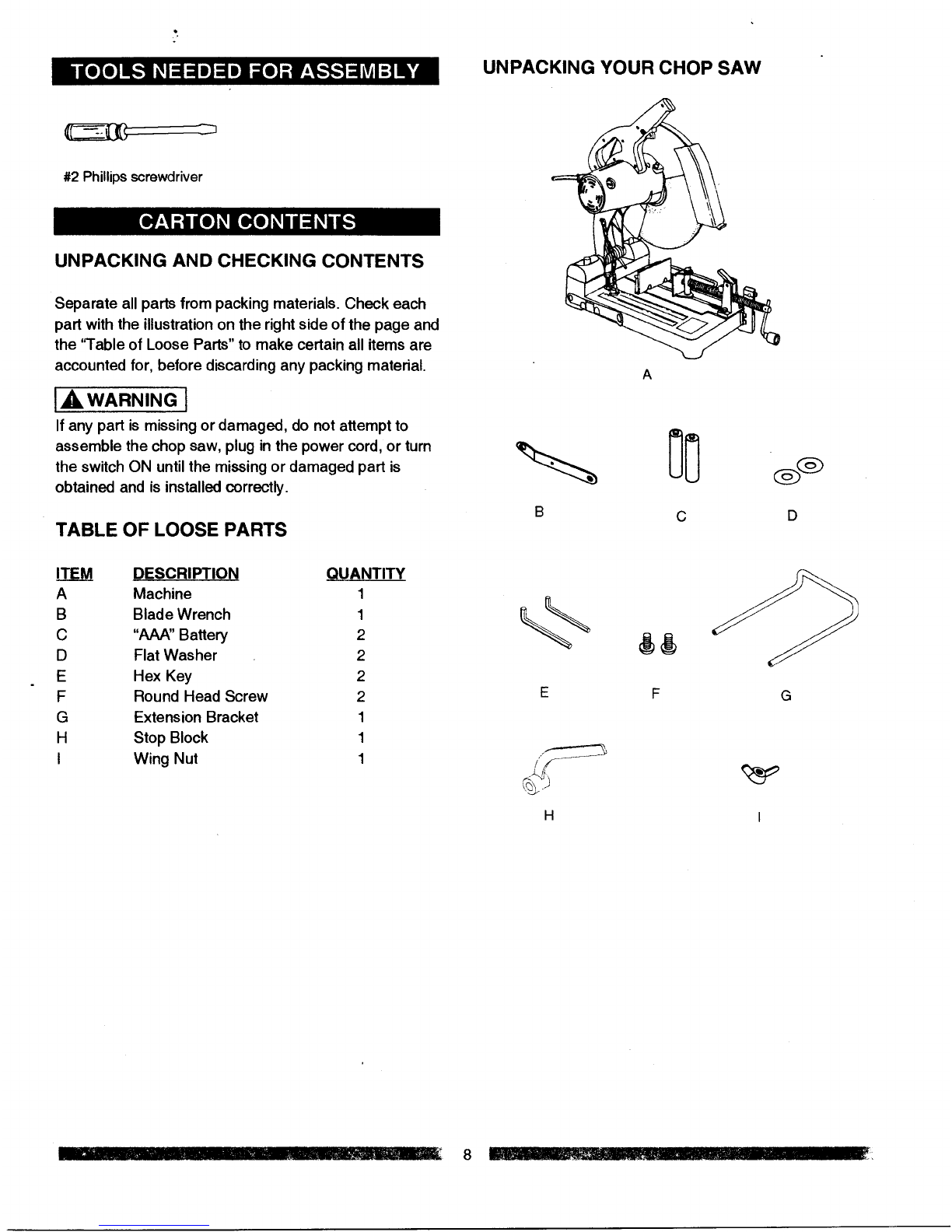 •DO NOT REMOVE THE CHOP SAW'S WHEEL