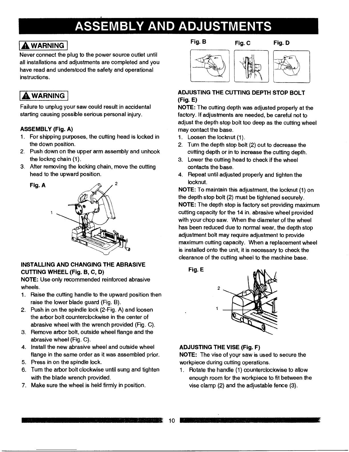 •ONLY USE ACHOP SAW WHEEL RATED