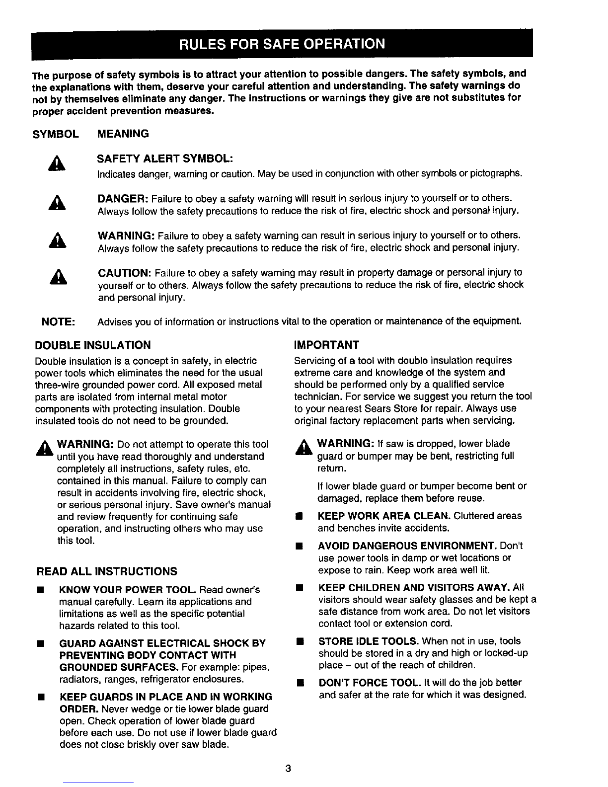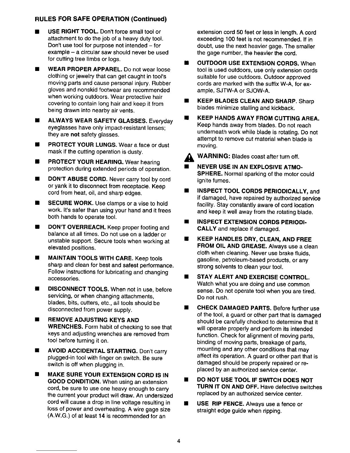 RULES FOR SAFE OPERATION (Continued)