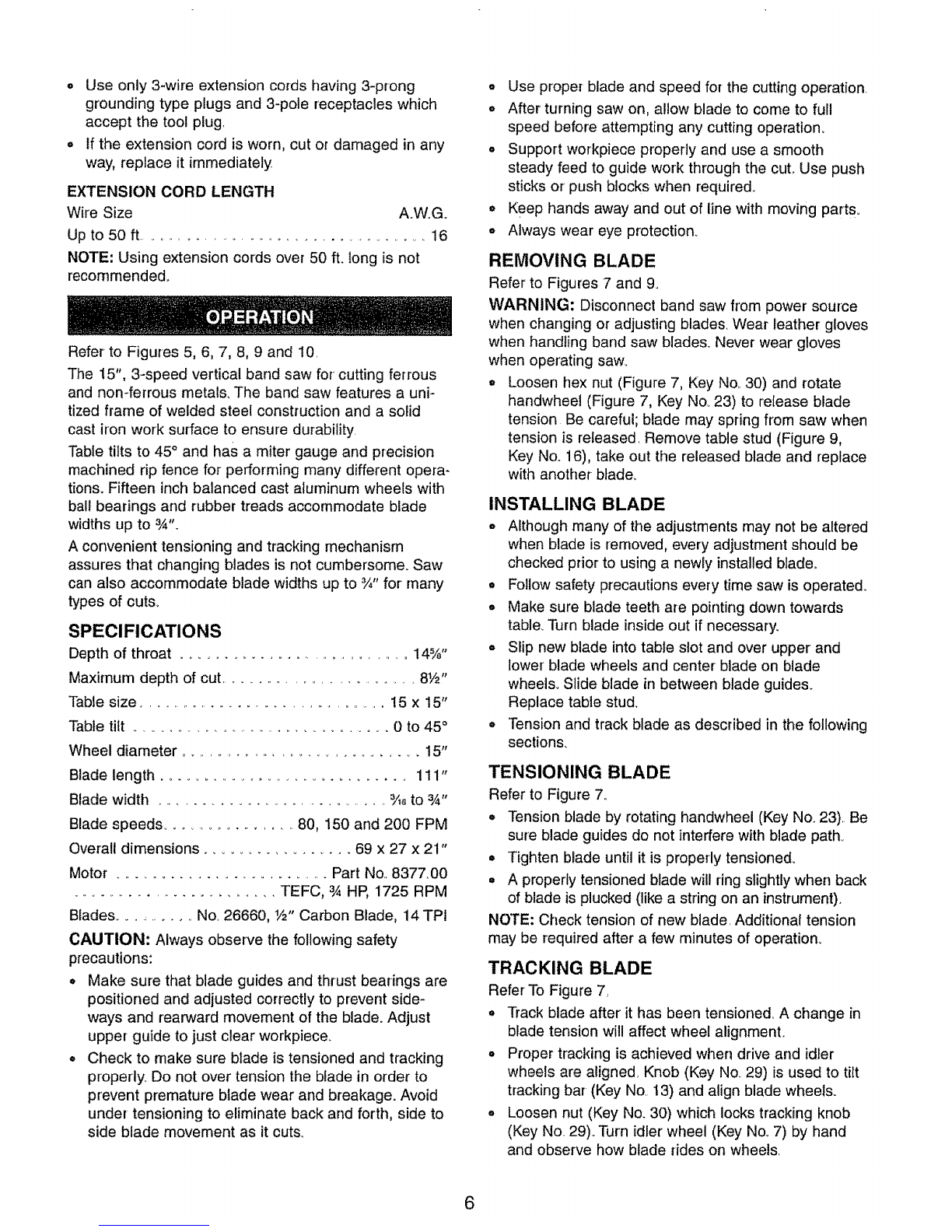 (See Figure 5, Blade Speeds, page 8)