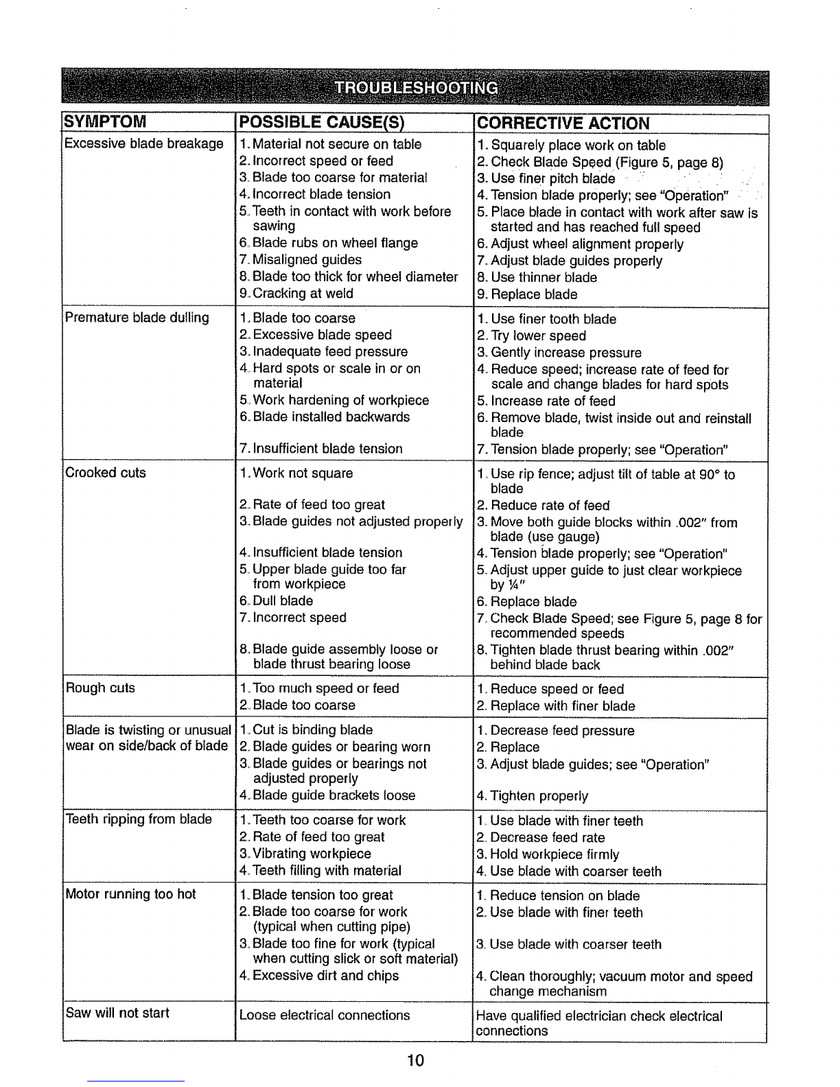 the band saw may develop excessive vibration,,