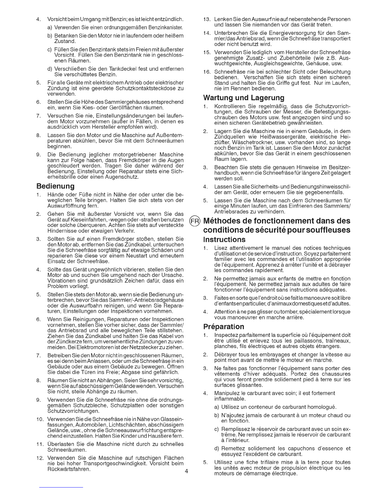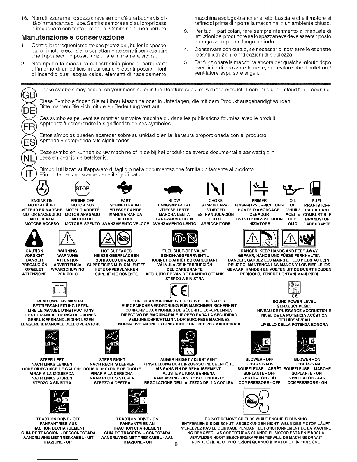 16. No hacer funcionar nunca la m&quina quitanieves sin una