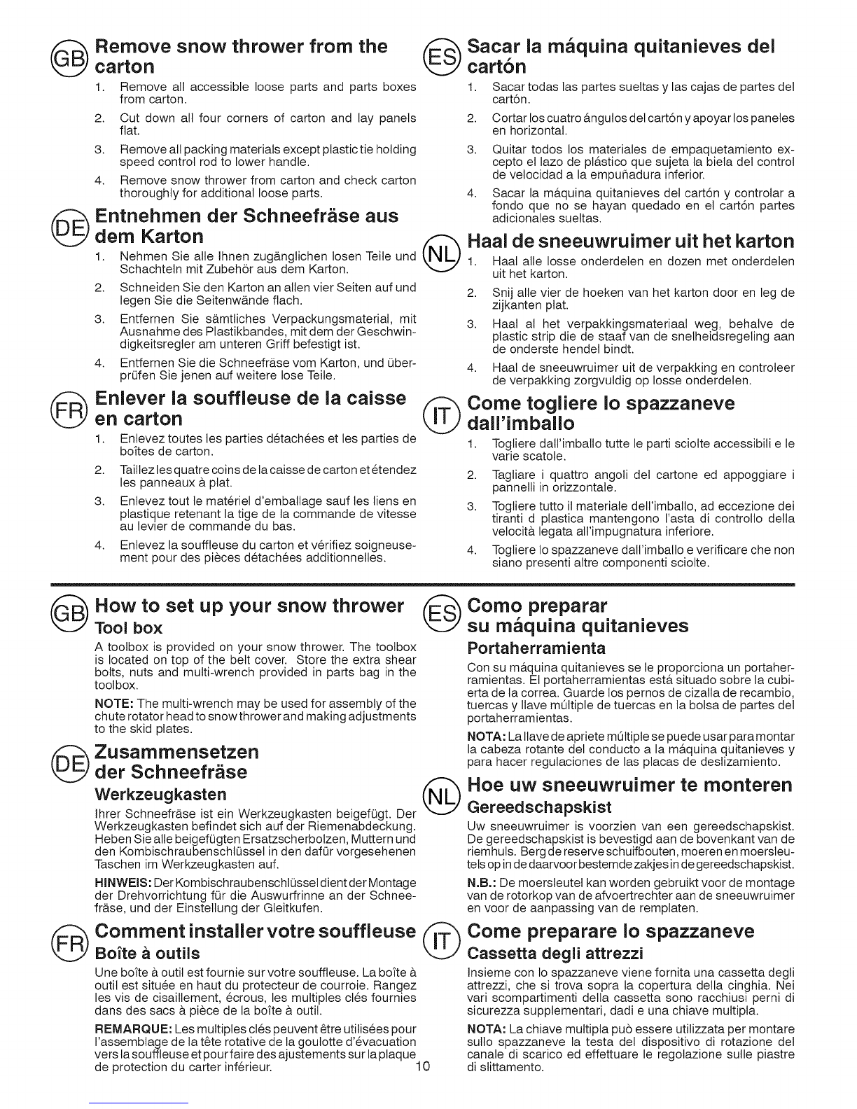 tes de votver a encender y utilizar la m&quina quitanieves.
