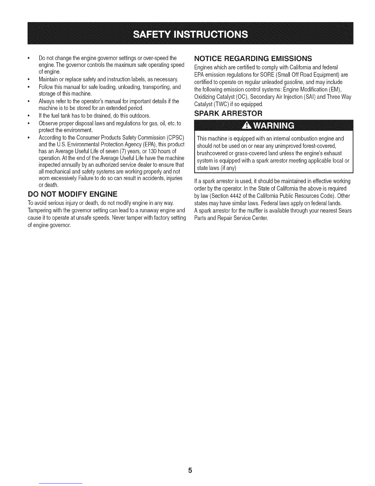 • Neverpick uporcarrymachinewhiletheengineisrunning.