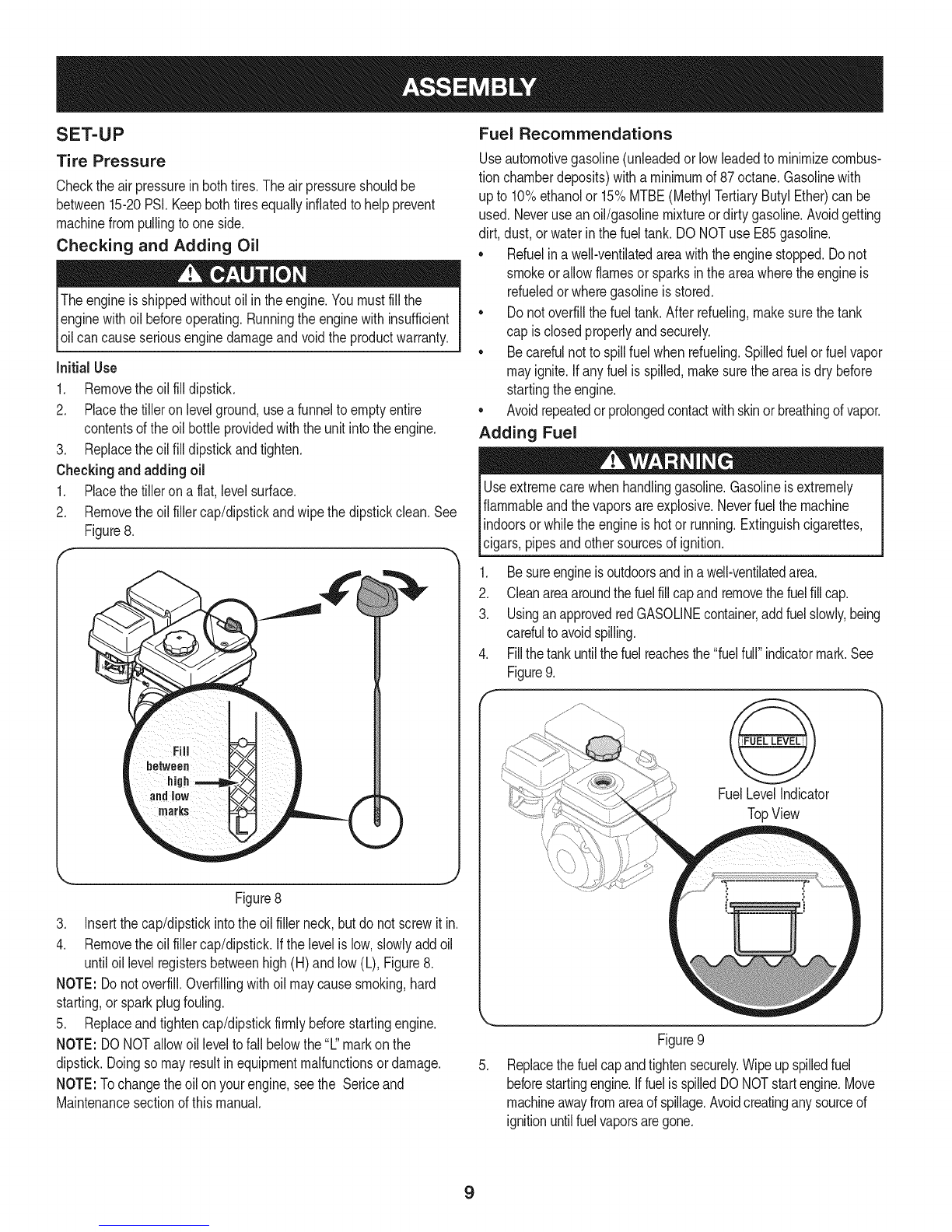 • Neveroverfillfueltank.Filltankto nomorethan1/2inchbelow