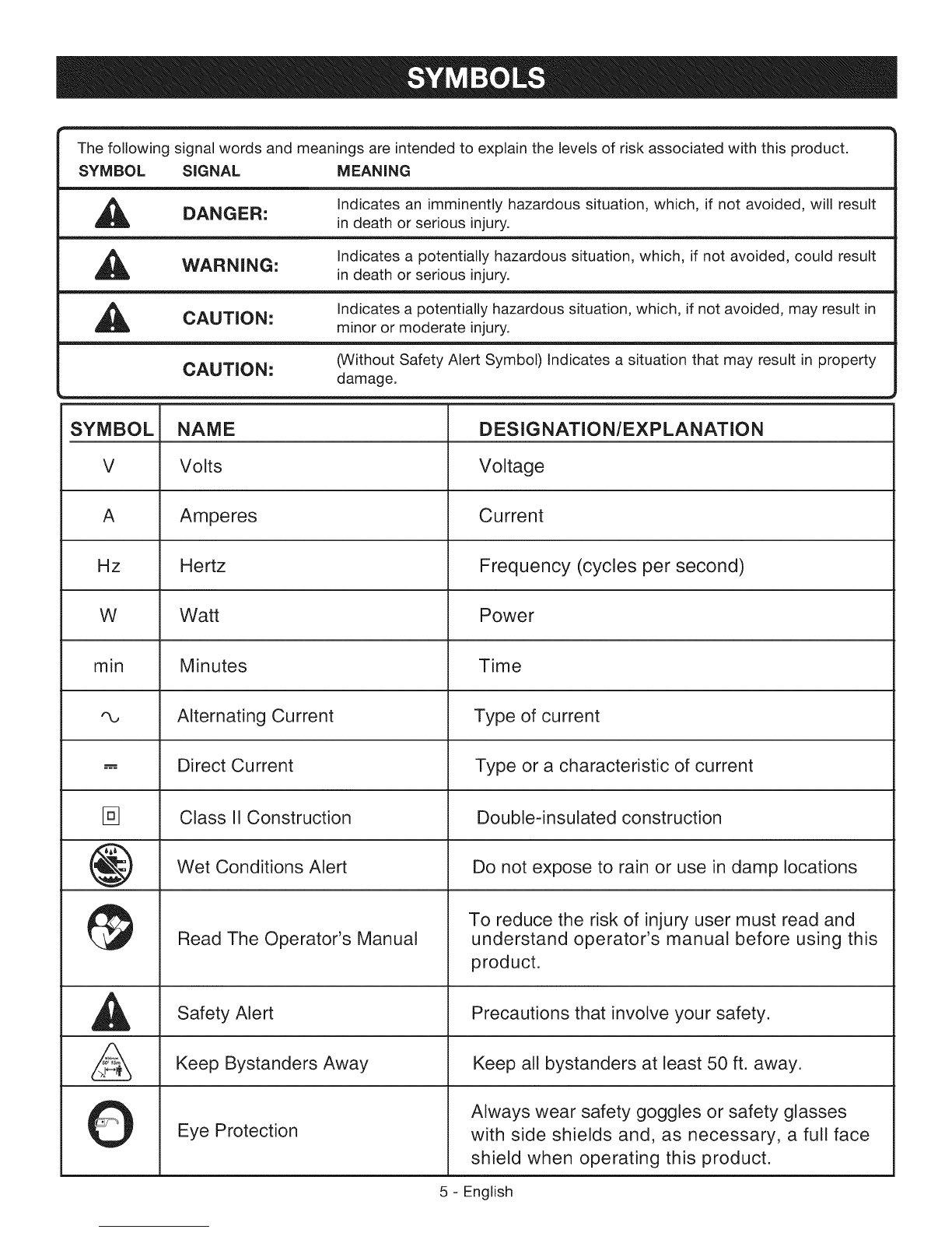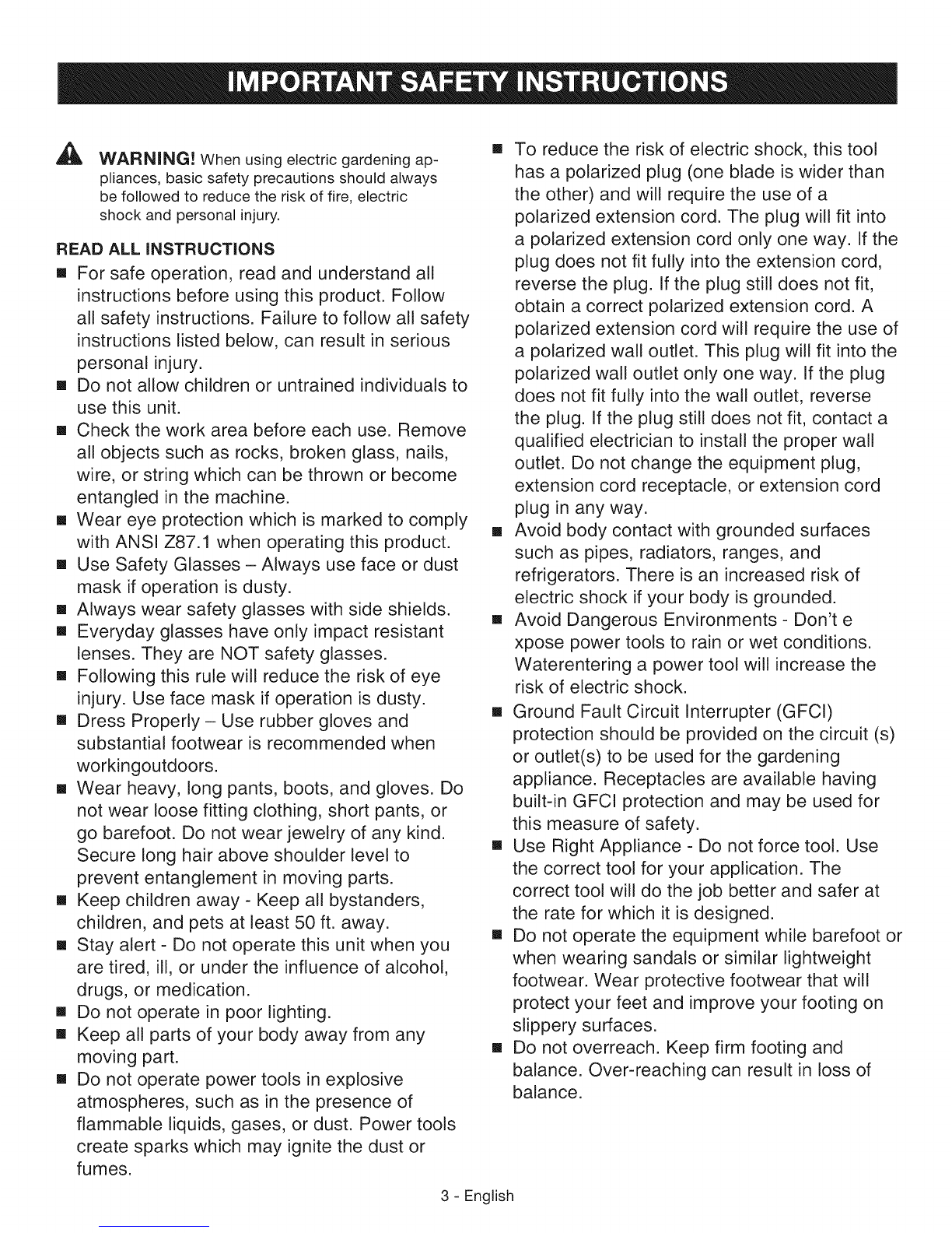 [] Keep the extension cord clear of operator and