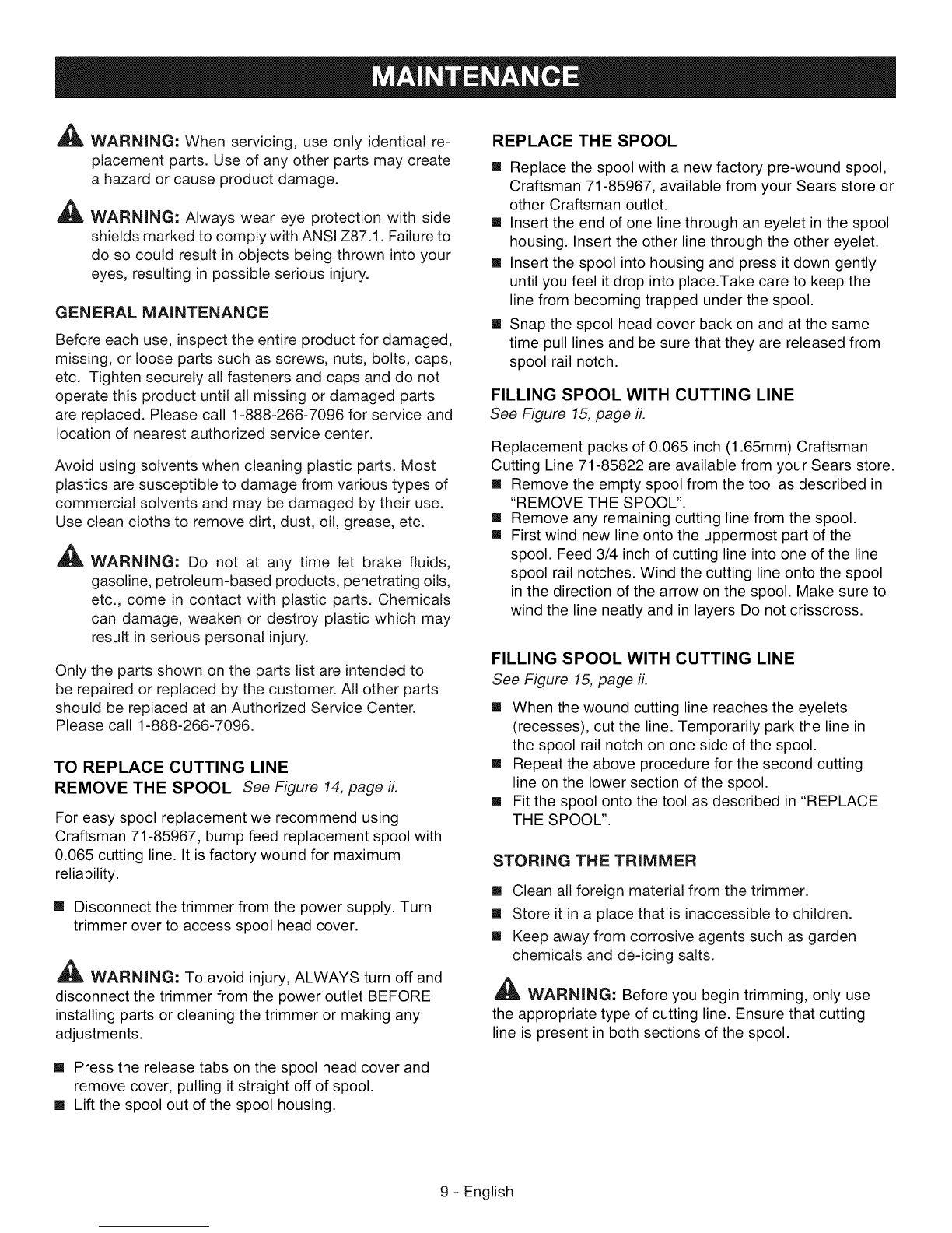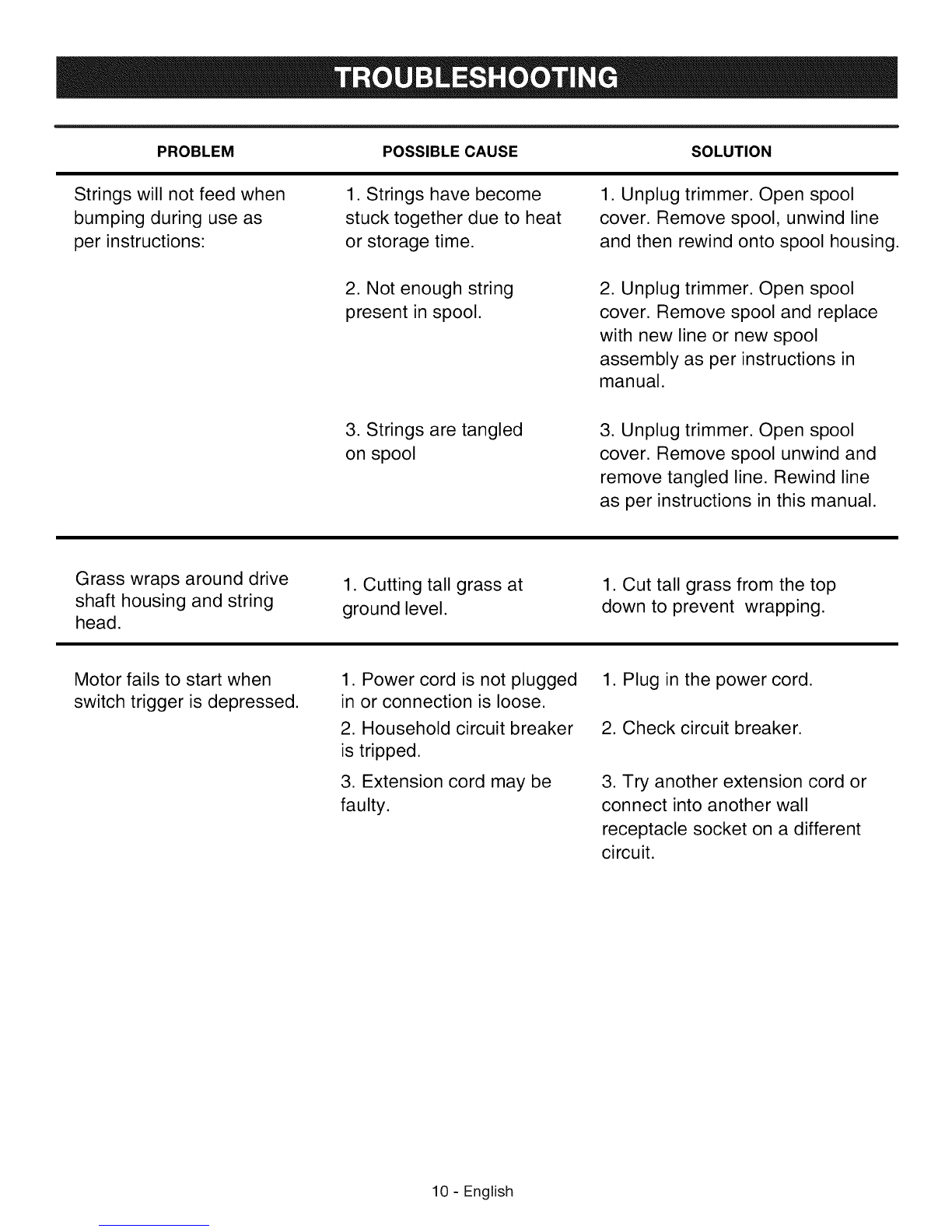 string in the cutting head. Do not use any other
