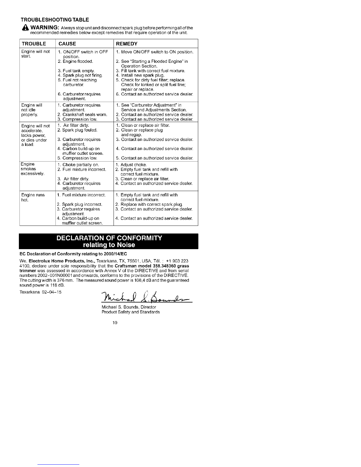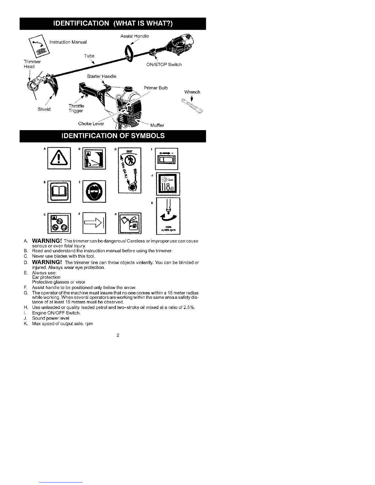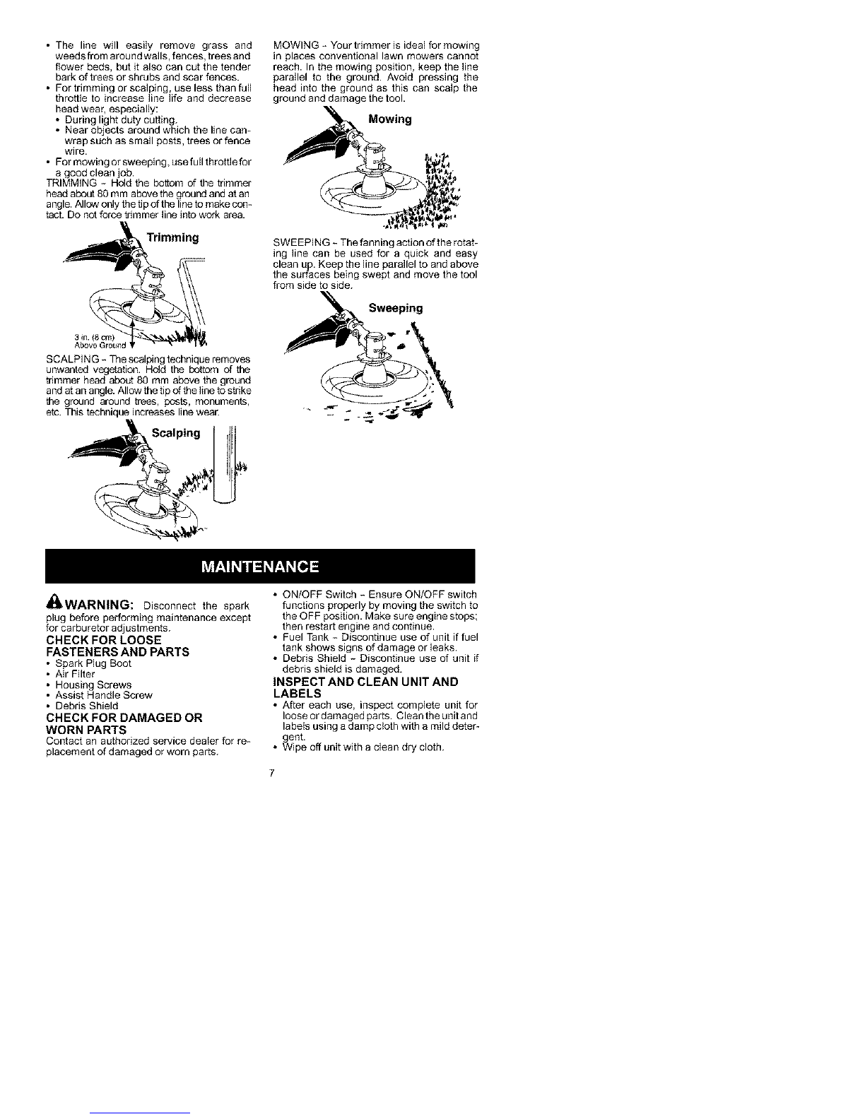 the unit. Use only specified trimmer head;