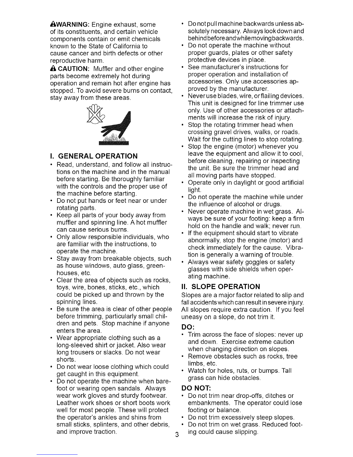 • Do not trim on wet grass. Reduced foot-