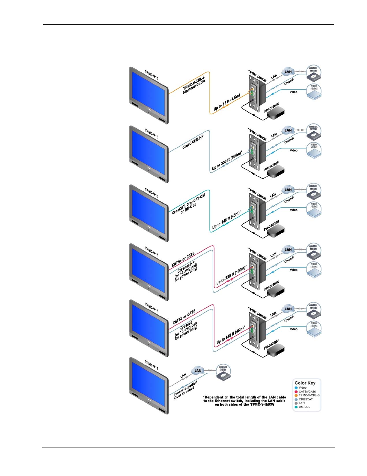 only. The maximum length for CRESCAT-D-HP, CAT5e/6 + CRESNET-HP or CAT5e/6 + 14 AWG